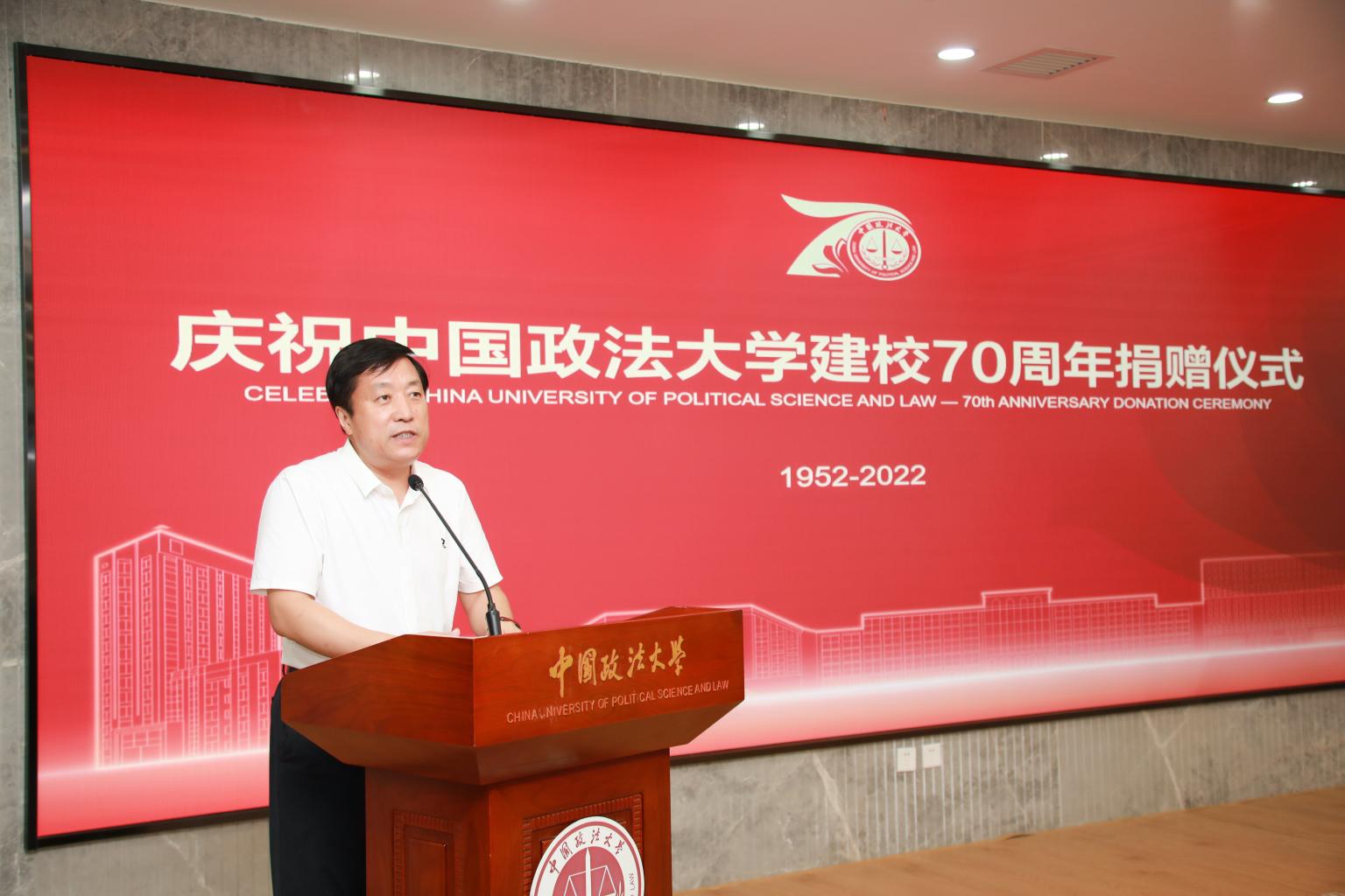 马怀德在总结讲话中对所有热心资助学校建设发展的单位和个人表示的感谢。他表示,回顾法大砥砺奋进的七十年,学校正是在一代又一代法大人艰苦创业、奋发图强的不懈努力下,在社会各界的关心、支持下发展起来的。这些成就离不开为学校慷慨解囊、捐资助学的校董、校友和捐赠者的无私奉献。他指出,大学需要大师,也需要大楼,大师是大学之魂,大楼是大学之基,社会资金支持高等教育是学校建设发展的重要补充。今天,我们举行庆祝建校70周年捐赠仪式,不仅是为了对各位捐赠人和领导表示感谢,更是为了弘扬大家爱校荣校、捐资助学、无私奉献的高尚精神,以激励一代又一代法大人,办好教育、建好法大、服务社会、报效国家。他强调,我们这一代法大人一定能够在新的历史起点上担当起历史的重任,传承法大优良传统,坚守法大“厚德、明法、格物、致公”的精神品格,培养更多高素质人才,为我国的教育事业、法治事业,为经济社会发展作出新的更大贡献。