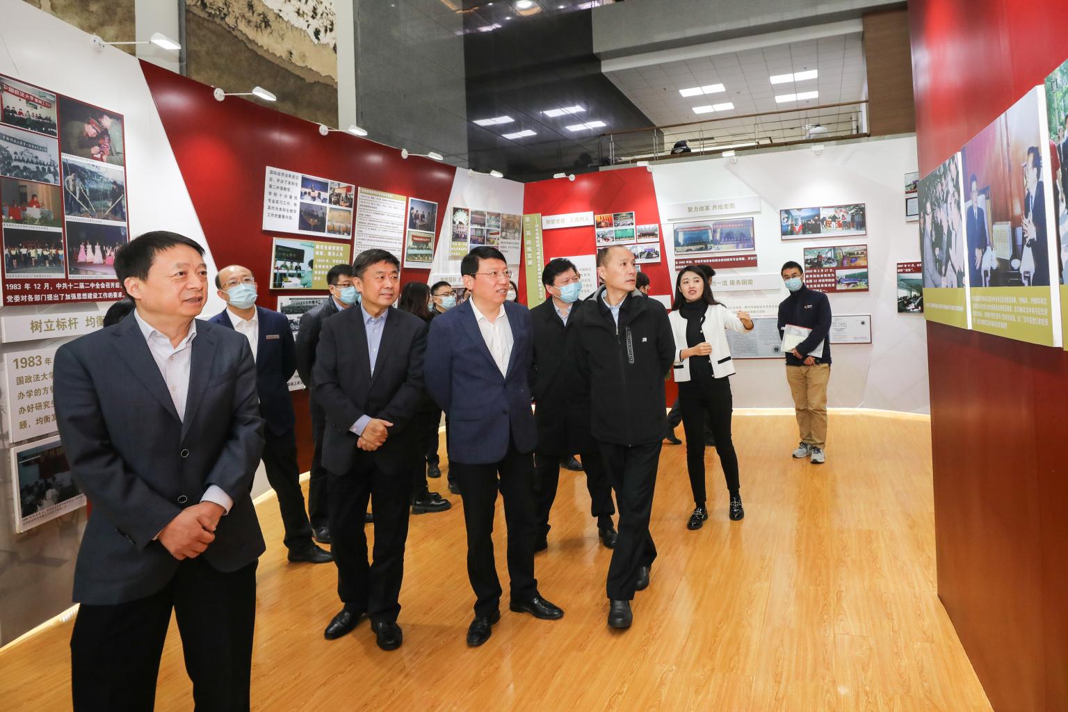 会议召开前,与会人员在逸夫楼一层参观了习近平总书记考察法大5周年成果展及我校65周年校庆展。