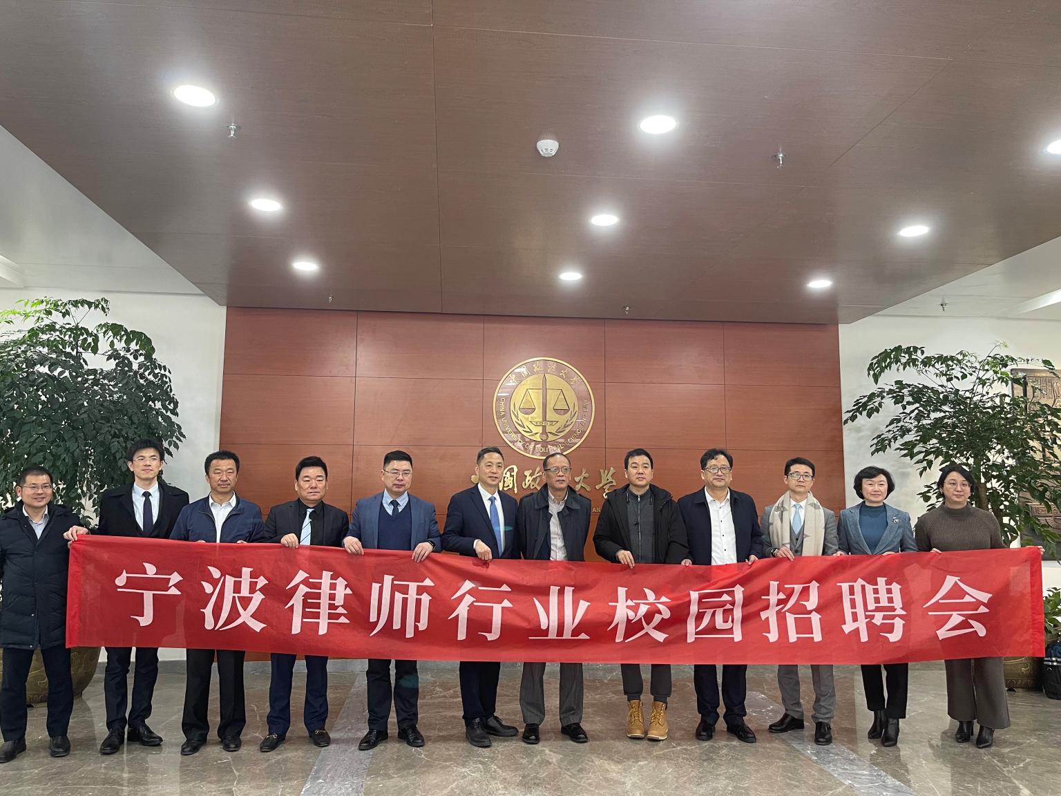 (特约通讯员 易典典)2月28日,新学期首场线下招聘会——宁波律师行业校园招聘会在我校海淀校区举办。宁波市司法局副局长忻思忠、宁波市律师协会会长徐立华及宁波市律师协会领导班子、九家律所校招负责人到校举行了招聘活动。招聘会期间,副校长李秀云会见了宁波市律师行业领导,学生处处长王洪松、学生就业创业指导服务中心主任解廷民以及部分学院负责人参加了活动。
