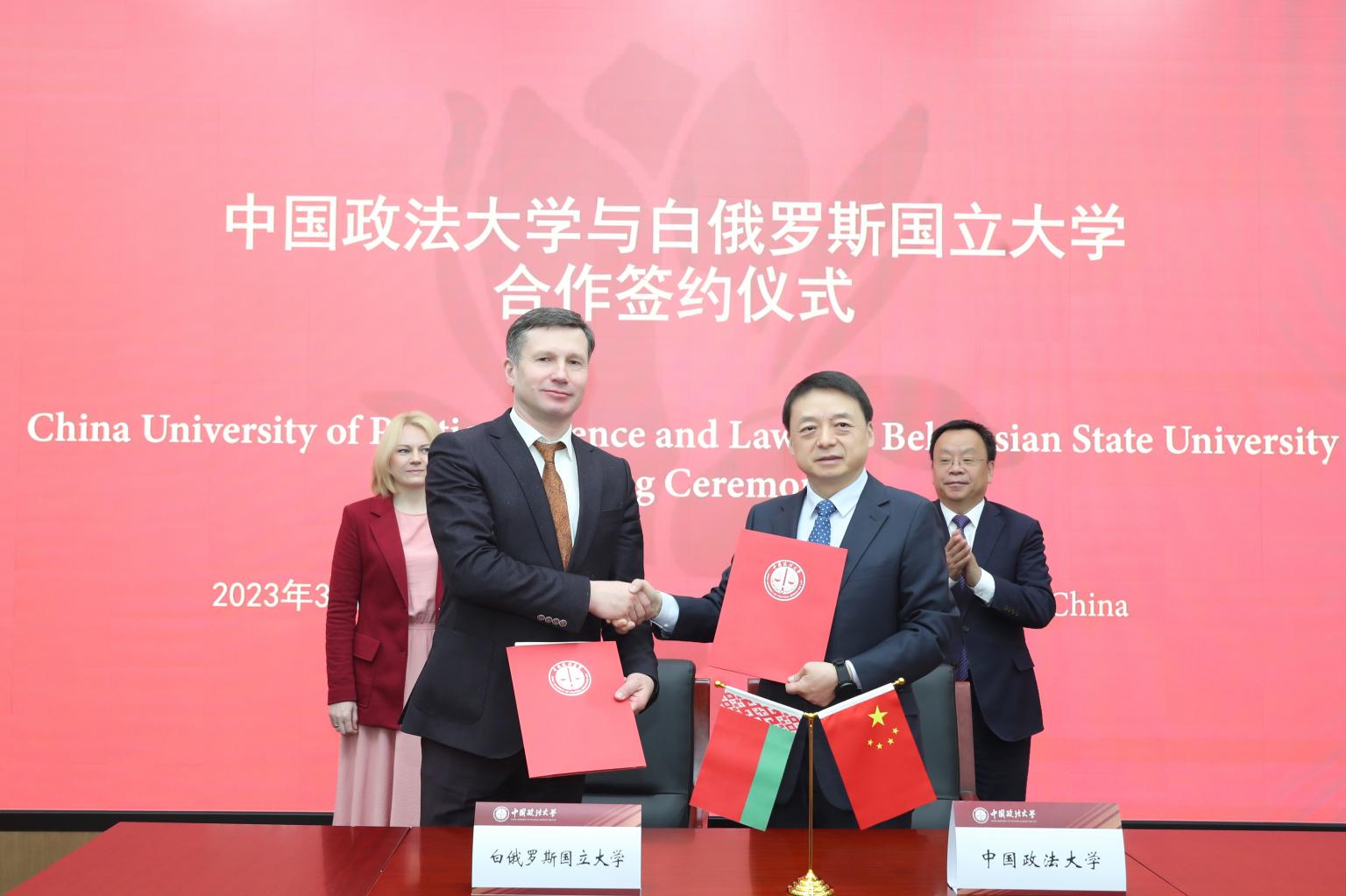 3月24日上午,我校与白俄罗斯国立大学合作签约仪式在海淀校区举行。校长马怀德和白俄罗斯国立大学校长卡罗尔·安德烈·德米特里耶维奇(Король Андрей Дмитриевич)出席并致辞。签约仪式由副校长时建中主持。