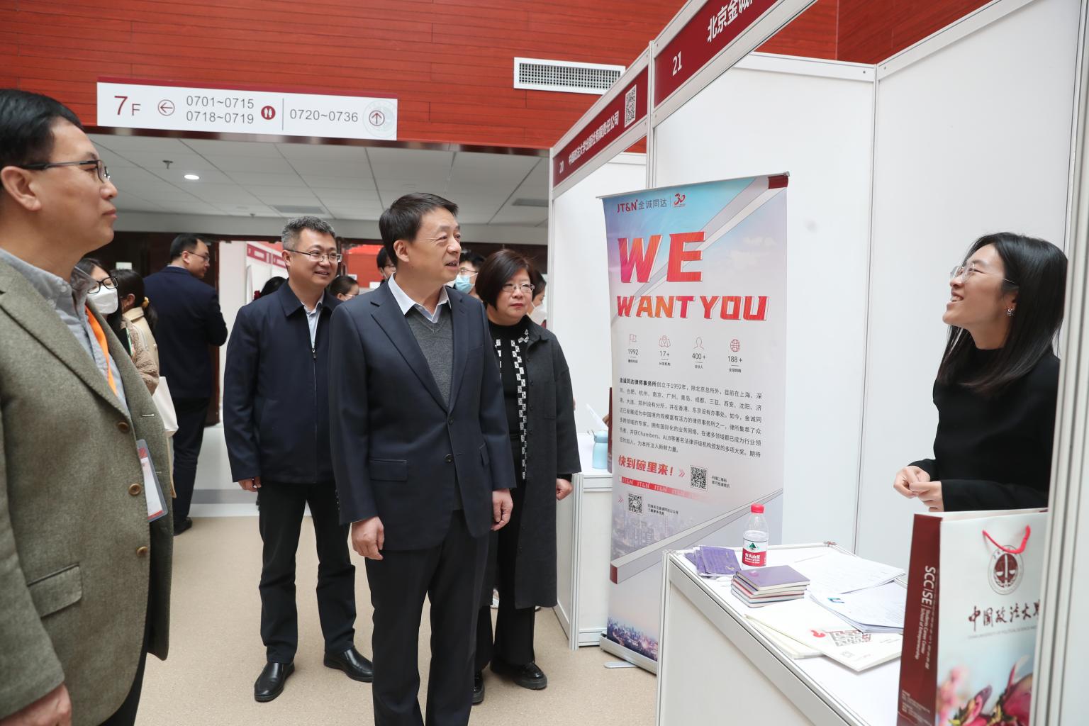 (特约通讯员 曹鹏荣)3月24日,我校2023届毕业生春季校园招聘会在海淀校区成功举办。本次招聘会是学校深入贯彻落实党和国家“稳就业”“保就业”决策部署,促进2023届毕业生高质量充分就业的具体举措之一。招聘会期间,校长马怀德、副校长李秀云到场了解招聘会举办情况,并与毕业生和参会用人单位代表亲切交谈。