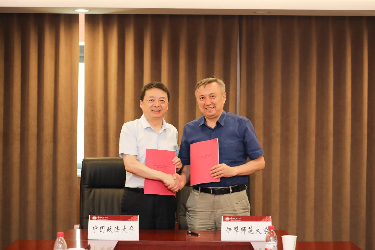 伊犁师范大学法学院院长马幸荣、组织人事部副部长伊磊和我校相关职能部门负责人参加了签约仪式,并围绕着支援合作开展交流座谈。