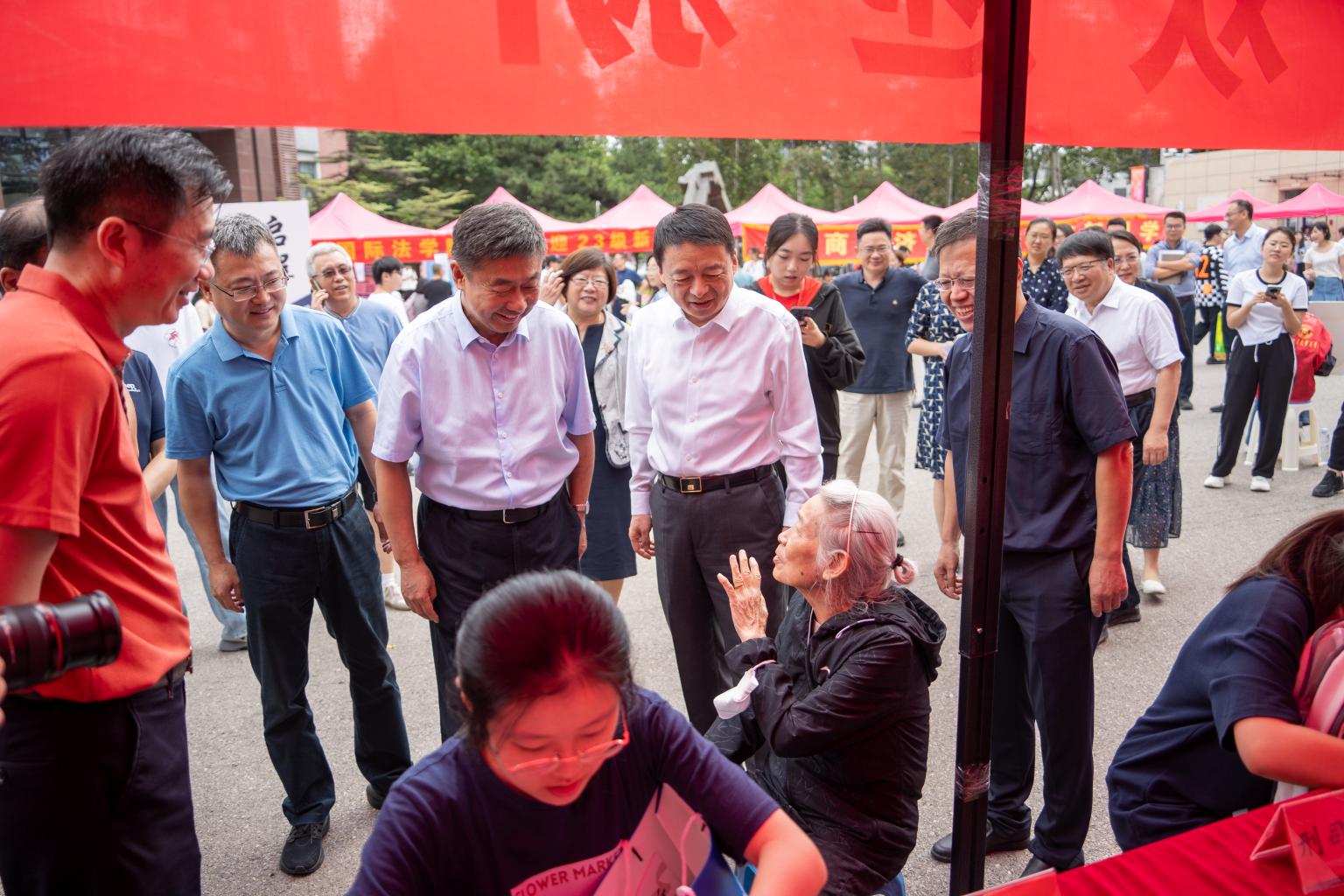 校领导一行首先来到各学院迎新展台,与学院负责人就专业招生情况、迎新情况进行了深入了解,详细询问了新生报到情况和报到流程、所需时间,查看了各学院、各部门及学生组织准备的迎新物资和文创产品,对学生的创意给予了极大的肯定。
