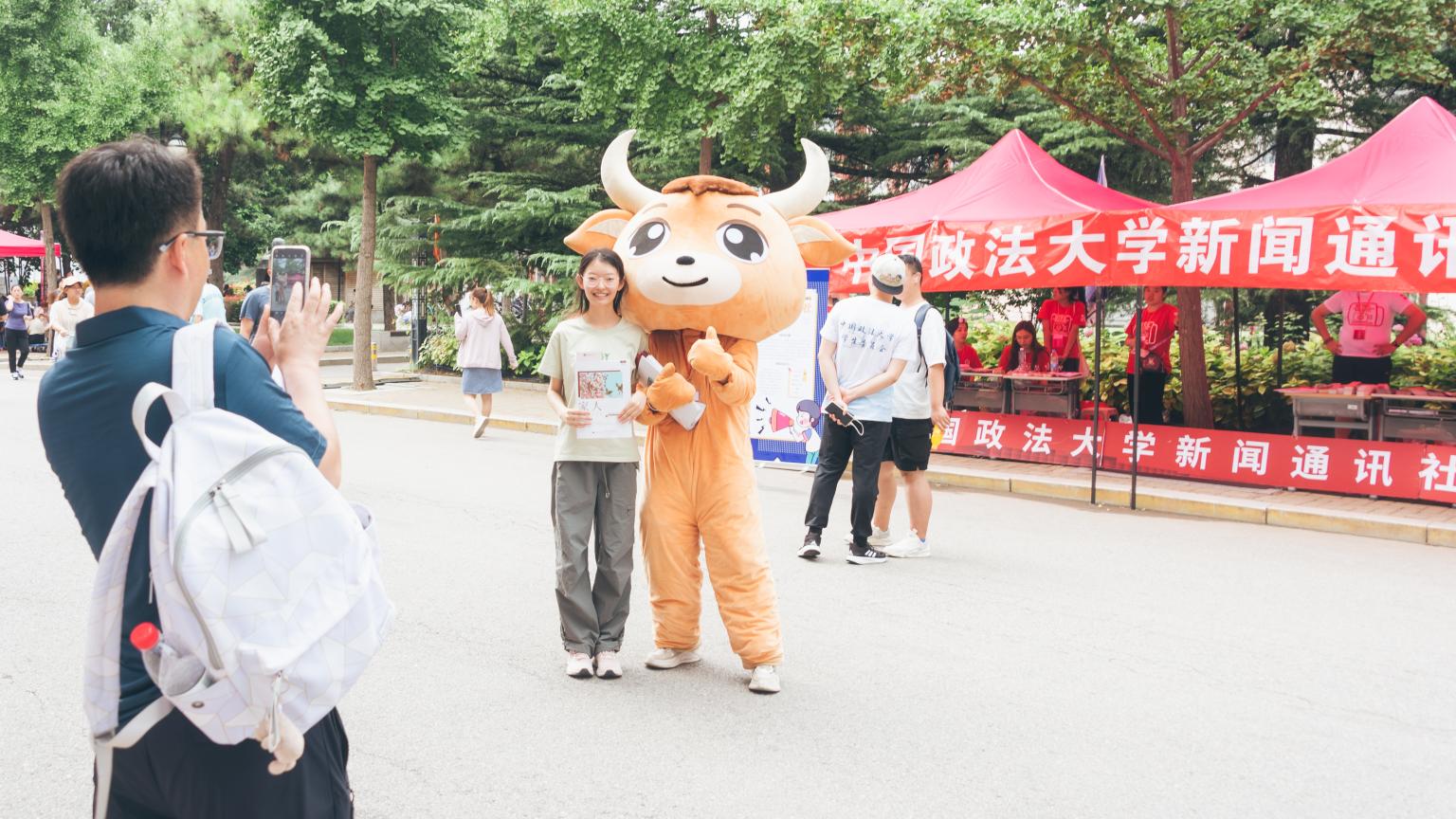 府学路27号的迎新主干道上,“欢迎新同学”横幅飘扬,各学院、各部门和学生组织的迎新展台一字排开,吉祥物“拓拓”挥手欢迎、合影的同学络绎不绝。“德法兼修 全面发展”“厚德明法 格物致公”“时代洪音彻凌云 青春征程正扬帆”“仗剑行公义 燃灯勤工笔”展板营造着热烈的迎新氛围……新生和家长们手持法大专属合影板,与亲爱的法大合影留念。朝气蓬勃、笑容洋溢的新生们在志愿者的引导下前往学院展台领取报到材料、有序完成报到。