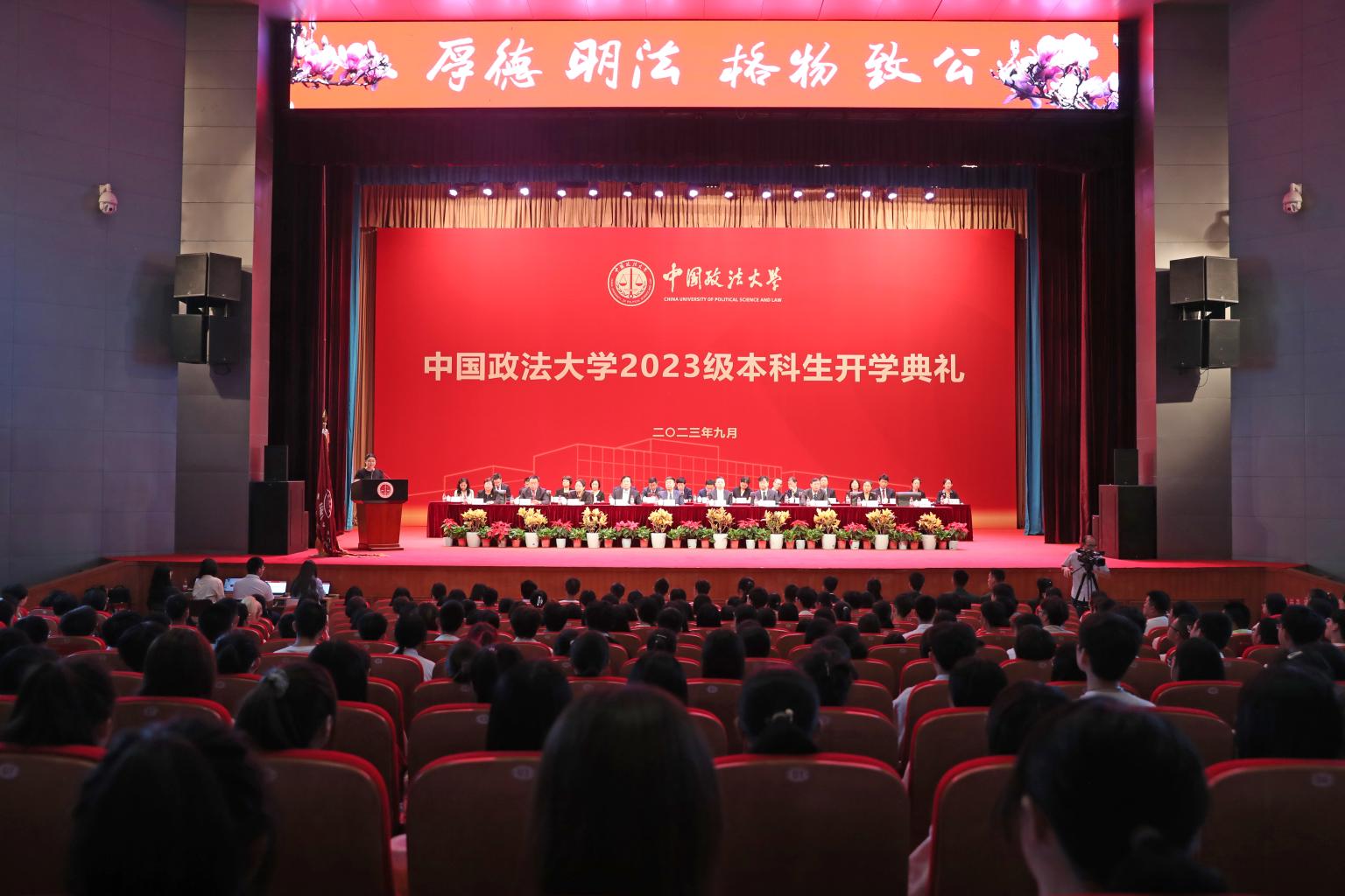 典礼上,马怀德代表学校对2023级本科新生表示衷心的祝贺和热烈的欢迎。他指出,在70余年的办学历程中,法大为国家培养了各类优秀人才30余万人,参与了自建校以来几乎国家的所有立法活动,引领着法学教育的创新;法大的使命神圣光荣,在“建成致力于法治中国建设的世界一流大学”办学目标和“坚持德法兼修、明法笃行,具有坚定理想信念、强烈家国情怀、高尚道德情操、扎实理论功底、卓越实践能力的高素质人才”人才培养目标的历史责任下,学校以“为党育人、为国育才,为法治文明作出贡献”为己任,立志为实现中华民族伟大复兴作出更大贡献。