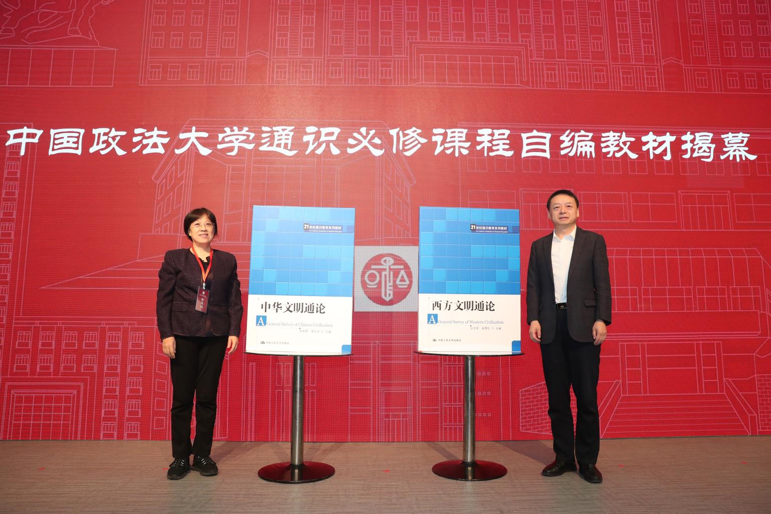 (马怀德与杨宗元为《中华文明通论》《西方文明通论》教材揭幕 摄影 卢云开)