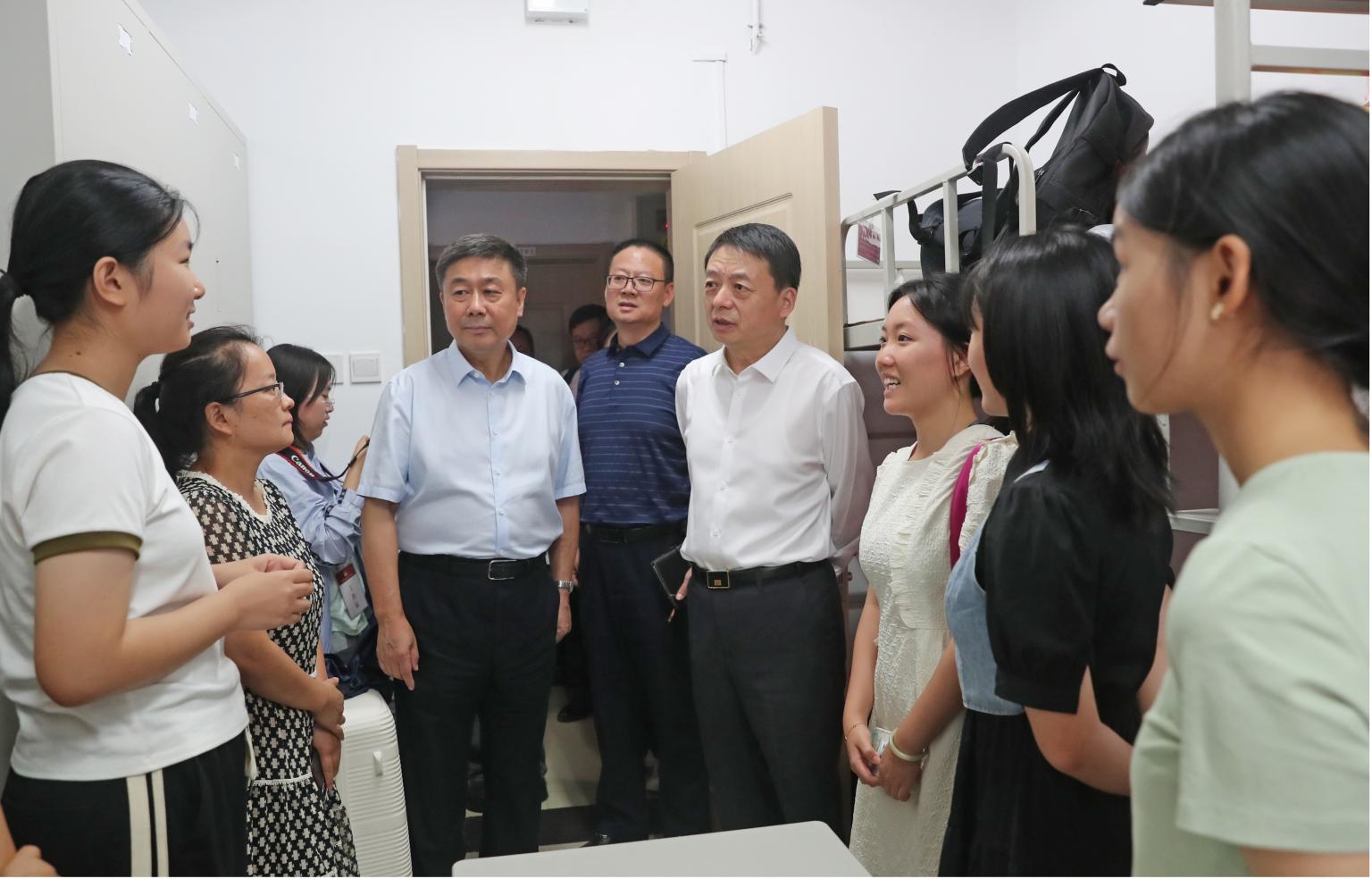 (胡明、马怀德一行走访新生宿舍)