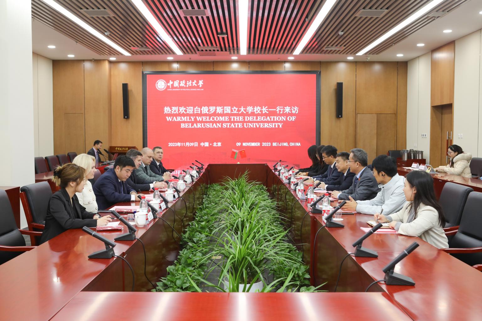 胡明首先代表学校对卡罗尔·安德烈·德米特里耶维奇一行再次到访法大表示欢迎。他回顾了重启线下交流后双方开展的友好互访,特别是今年9月法大代表团访问白俄罗斯国立大学时达成的各项共识,并对即将开展的交换生项目合作提出了具体要求。他表示,法大十分重视与白俄罗斯国立大学的合作,在已签署的合作谅解备忘录基础上的各项务实合作均已有条不紊的得以推进。未来,希望两校能够进一步开展学术对话和师生交流活动,通过互惠共赢的合作,促进两校发展,深化两国人民友谊。