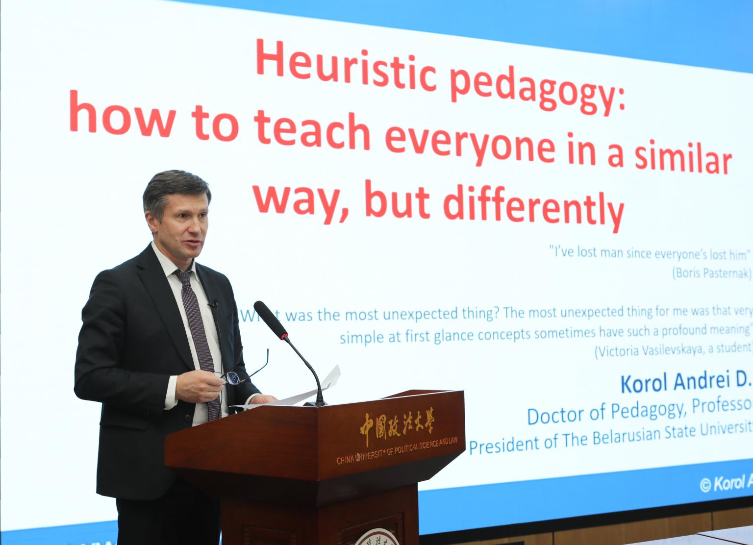 卡罗尔·安德烈·德米特里耶维奇感谢法大的热情接待。他说,在短短一年时间里,法大对与白俄罗斯国立大学的合作给予高度的重视和高效的推动,他本人在半年内已两次访问法大,此次来访并举办讲座也是为积极回应双方于9月在明斯克的会谈成果。他希望两校能够继续积极推进包括教师短期授课、学生短期交流项目、联合举办国际会议等形式在内的各类合作。