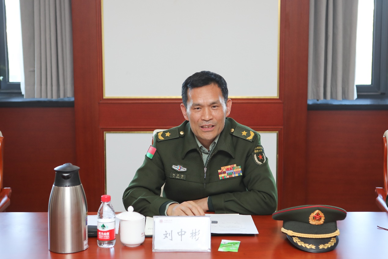 (国防大学国际防务学院少将政治委员刘中彬一行来访座谈 摄影 尹建峰)