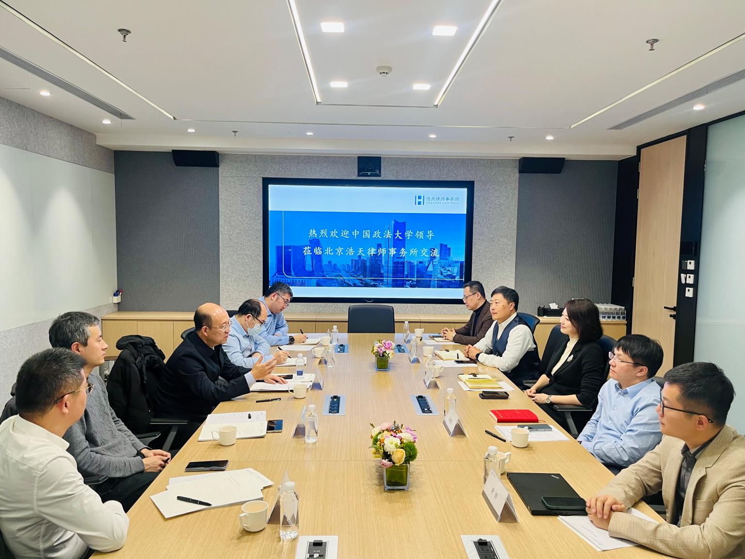 11月30日,我校党委副书记黄瑞宇一行赴北京浩天律师事务所(以下简称“浩天所”)座谈交流。浩天所管委会委员、合伙人张淼、董文浩等律师代表,以及我校相关职能部门负责人参加本次座谈会。
