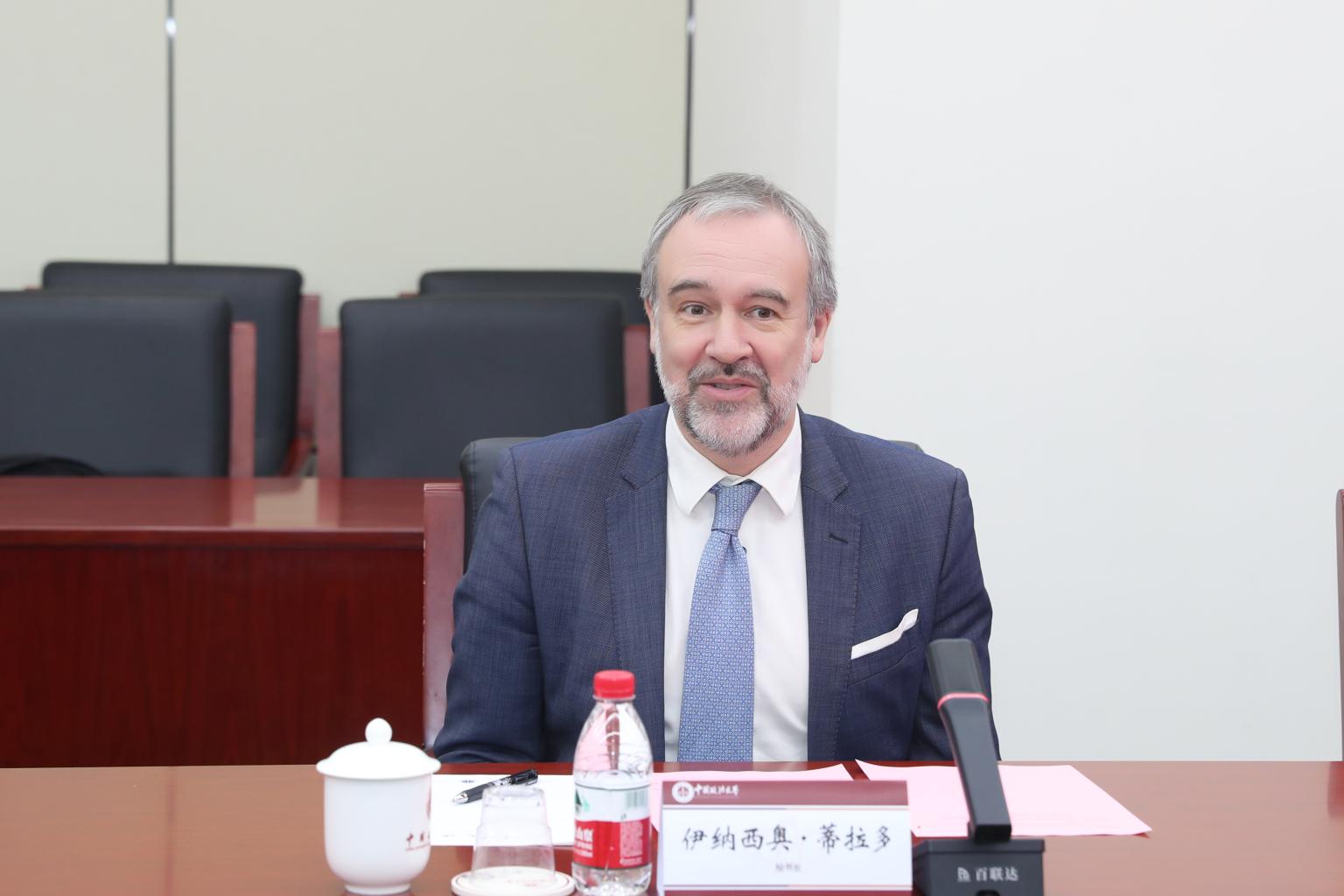 伊纳西奥·蒂拉多对我校的热情接待表示感谢。他介绍了国际统一私法协会的部门职能、学术资源以及国际合作情况,并回顾了在我校中欧法学院的任教经历,此次来访更感到宾至如归。他对我校涉外法治人才培养取得的成果表示赞赏,同时也对今后双方机构在科研合作、学术资源共享、学生实习实践等领域的合作表示期待。