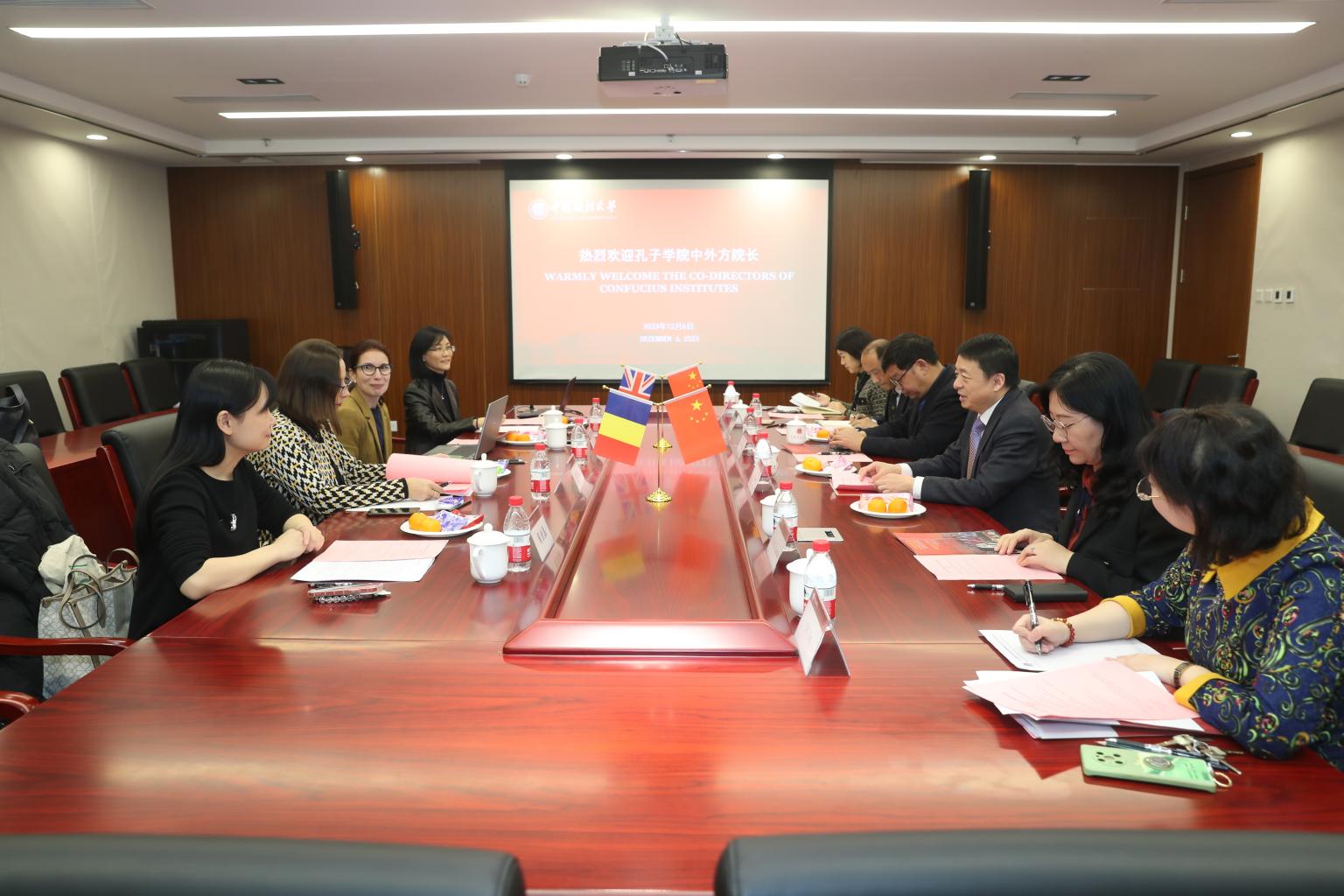 12月6日下午,校长马怀德在海淀校区会见了来华参加2023年世界中文大会的我校共建孔子学院中外方院长一行。英国班戈大学孔子学院(以下简称“班戈孔院”)外方院长丽娜·戴维特(Lina Davitt)、中方院长许丹,罗马尼亚布加勒斯特大学孔子学院(以下简称“布大孔院”)外方院长白罗米(Luminita Balan)、中方院长周佳磊、相关职能部门负责人参加会见。会议由国际合作与交流处副处长王福平主持。