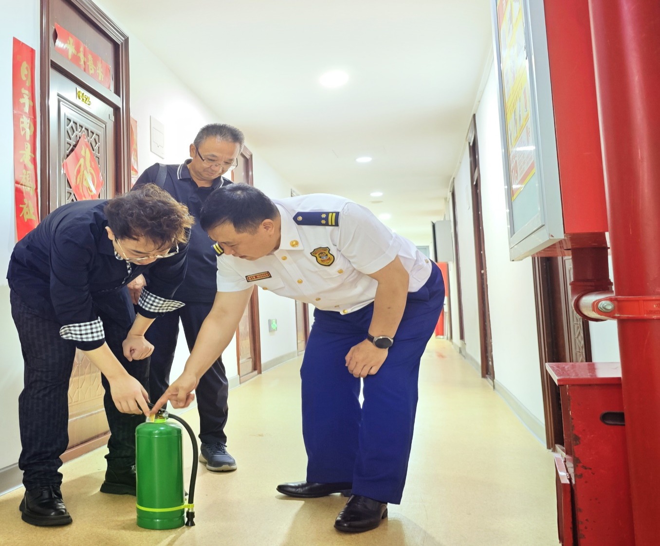之后,检查组分别从管理制度、隐患排查、重点部位、宣传教育、培训演练等方面分组展开实地检查。