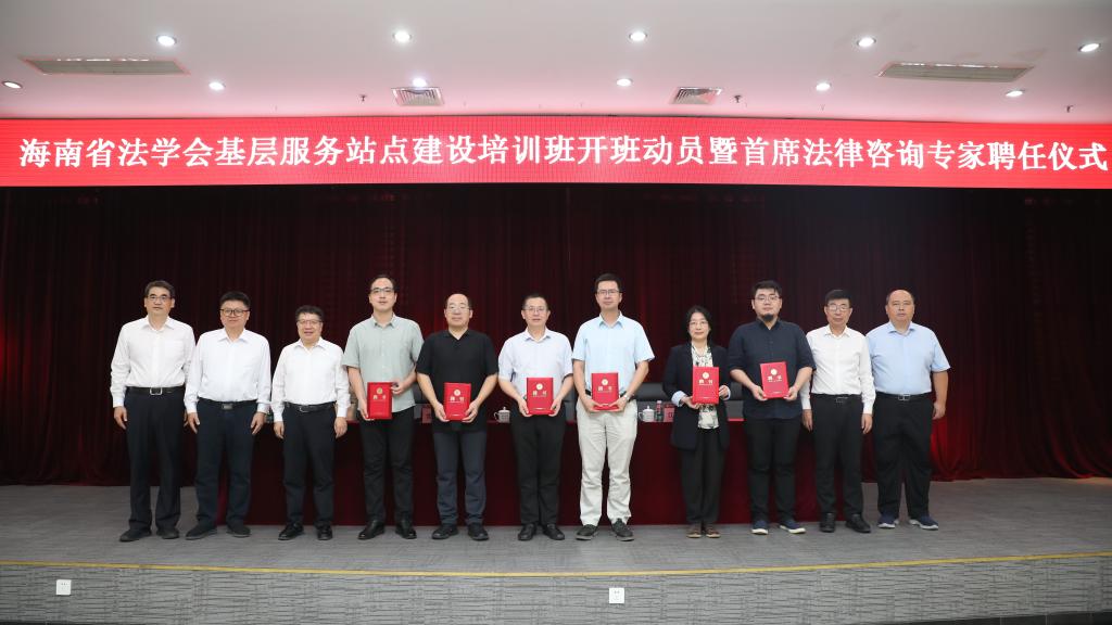 9月19日上午,海南省法学会基层服务站点建设培训班开班动员暨首席法律咨询专家聘任仪式在我校举行。中国法学会办公室主任、会员部主任吕兴焕,海南省委政法委政治部主任江南萱,副校长常保国受邀出席开班仪式并致辞讲话。会议由海南省法学会专职副会长兼秘书长朱安领主持。