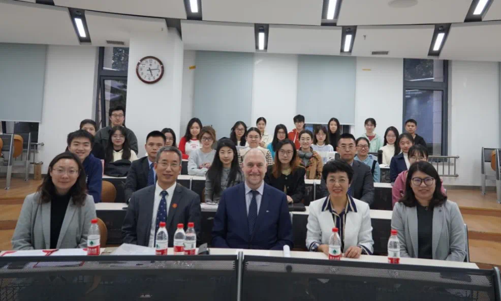 桑德斯对法大的热情接待表示感谢。他充分肯定了法大在人才培养方面的理念与远见,并对法大师生在国际组织中的卓越表现给予了高度评价。随后,他结合自身在欧洲复兴开发银行、国际农业发展基金以及亚洲基础设施投资银行等国际组织的工作经历,表示将积极助力更多中国优秀青年在国际舞台发挥更大作用。他说,只有各界人士携手努力,才能实现通过法律让世界更加公平、更加美好的共同愿景。