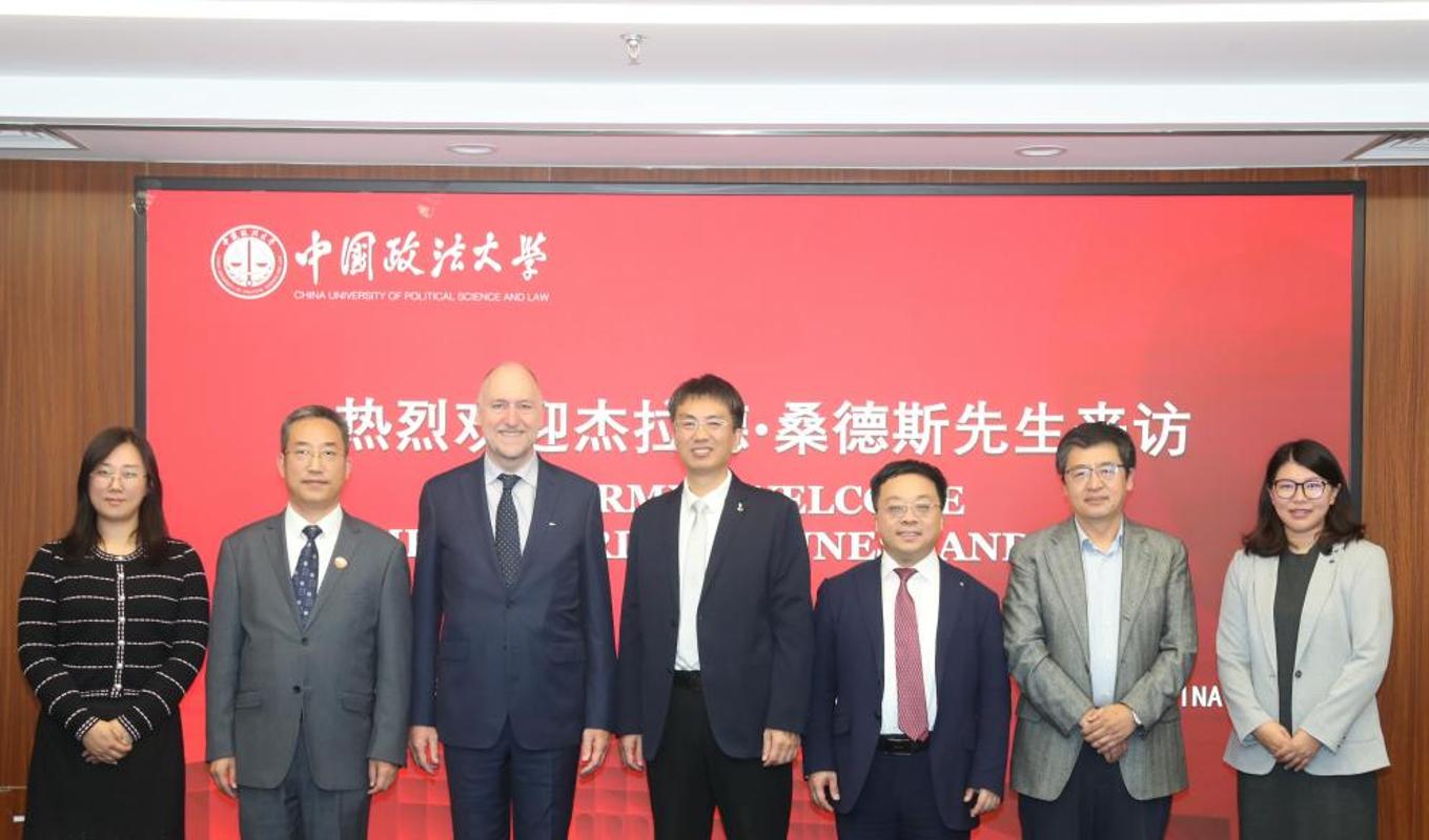 卢春龙首先对桑德斯先生的到访表示热烈欢迎,对桑德斯先生长期以来对学校涉外法治人才培养等工作的大力支持表示衷心感谢,特别是出席我校举办的第一届世界法学家论坛并做主旨演讲。他表示,桑德斯先生多年来为法大国际组织青年人才培训班举办系列讲座,并与我校科研团队保持着密切的交流与合作,希望未来,法大能与亚投行进一步深化在人员及科研方面的合作,拓展覆盖领域及学科,探索合作新模式。他还积极邀请桑德斯先生担任我校兼职教授,共同携手为学校人才培养、学科建设及国际合作提供持续指导与支持。