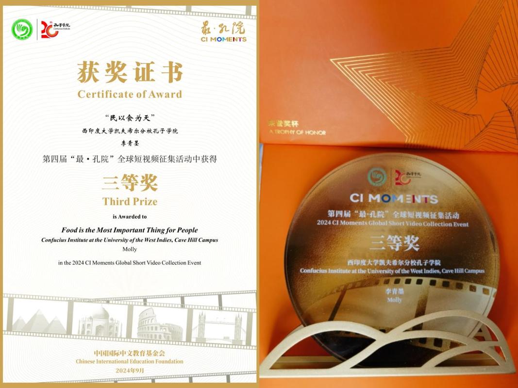 北京时间9月27日,我校共建巴巴多斯西印度大学凯夫希尔分校孔子学院(以下简称“巴巴多斯孔院”)公派教师李青墨的作品《民以食为天》荣获第四届“最·孔院”全球短视频大赛三等奖。
