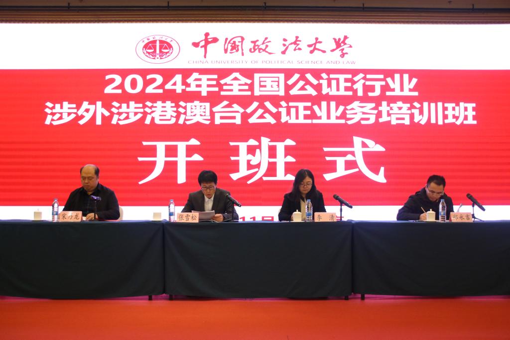 11月4日,2024年全国公证行业涉外涉港澳台公证业务培训班开班式在北京顺利举行。中国公证协会业务部主任张雪松,司法部公共法律服务管理局公证工作处一级调研员李清,中央政法培训学院执行院长、我校继续教育学院院长宋乃龙出席。开班式由中央政法培训学院执行副院长郑永吉主持,来自全国各省市及新疆生产建设兵团的700名多学员参加本次培训。