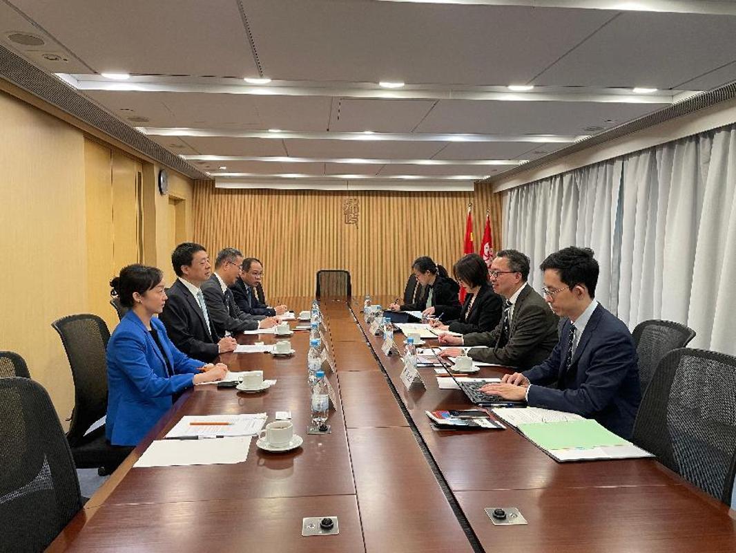 9日上午,代表团参访香港律政司,与司长林定国、国际法律人才培训办公室主任杨玲、副主任胡仲儿、法治建设办公室高级政府律师潘瑾会见交流。