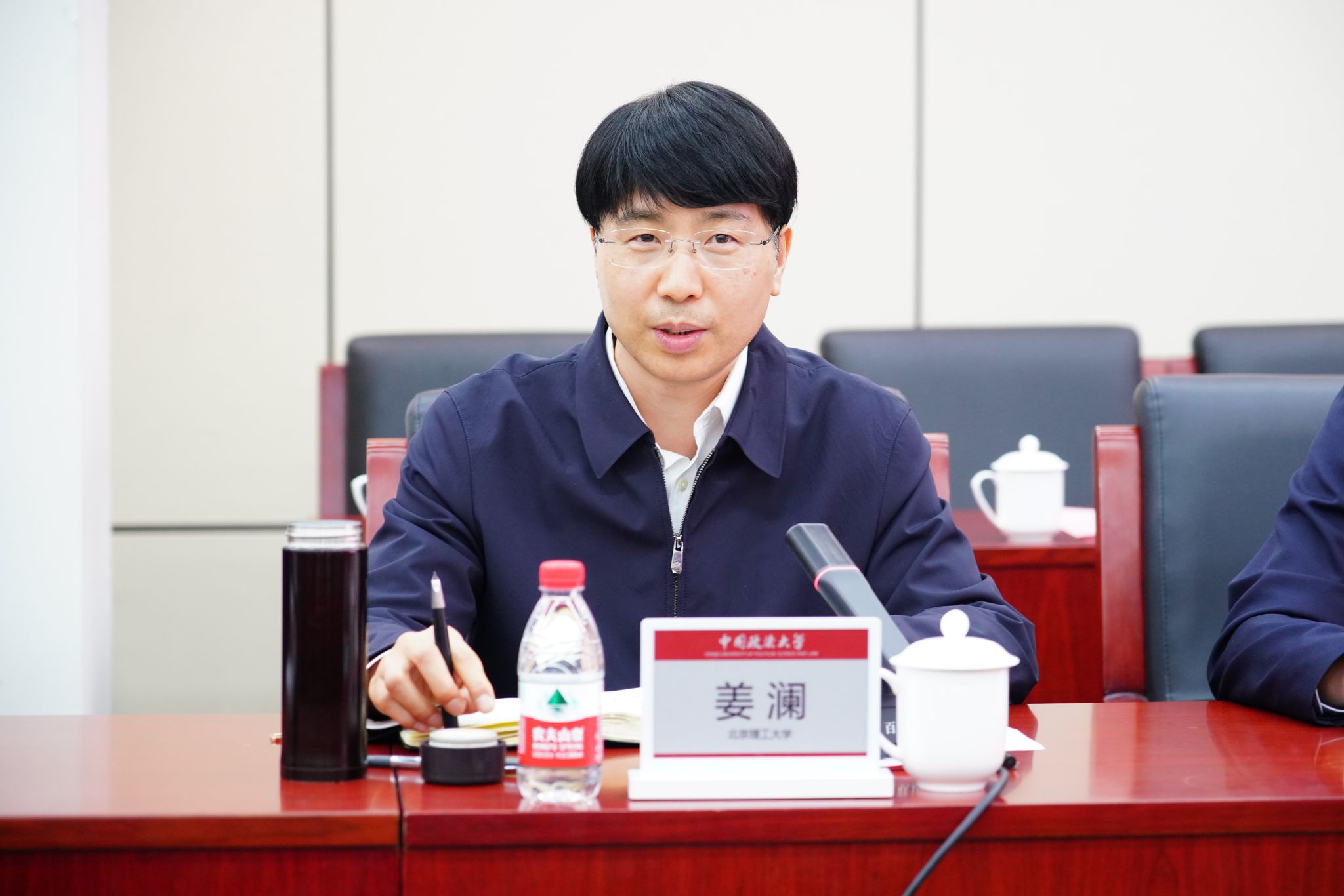 姜泽廷向北京理工大学一行表示欢迎与感谢。他表示,两校在过去一年都取得了令人振奋的成绩,共同迈进了高质量发展新阶段。今年是教育强国建设全面布局、高位推进之年,全国教育大会和教育强国建设规划纲要打开了教育事业发展的战略机遇期,两校肩负着服务国家重大战略的使命,此次强强联合,必将为科技强国、教育强国和法治中国建设注入新动能。希望两校以签约为契机,共同应对人工智能等科技变革带来的产业结构与社会结构调整的矛盾与挑战,推动前沿科技与法治建设的交叉融合,在战略支撑、人才培养、社会服务等方面,合力打造新时代校际合作的示范标杆。一是聚焦“国之大者”精准发力,特别是在法治轨道上推进中国式现代化,要真抓实干以科技创新与制度创新“双轮驱动”,一体推进教育科技人才协同机制改革,服务国家高质量发展;二是聚焦学科融合重点发力,促进学科间深度交融与渗透,孕育新兴交叉学科生长点,为落实总体国家安全观培育兼具法律素养与技术专长的复合型、创新型、应用型高素质人才;三是聚焦平台建设持续发力,共建“智慧法学”等学术交流与科研协作平台,打造“法工”融合科研创新平台,推动优势学科高水平融合发展。