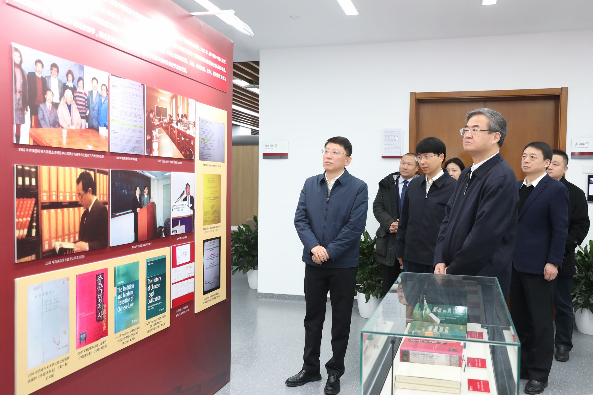 会前,北京理工大学一行在姜泽廷、马怀德等领导的陪同下一同参观了我校校史展和“致敬人民教育家张晋藩”主题展览。