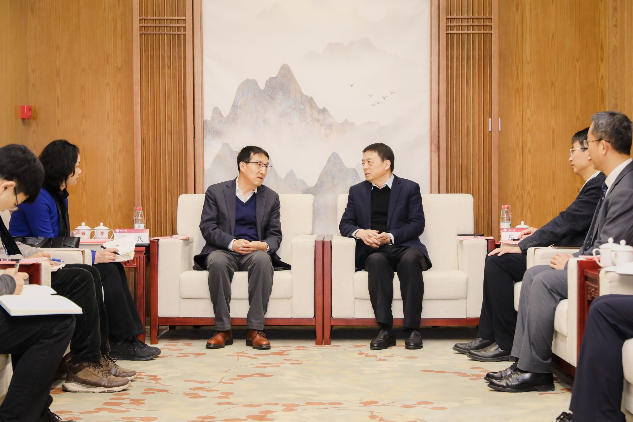 会见结束后,外交部领事司一行二十人与我校国际合作与交流处、国际教育学院开展联学联建活动。国际合作与交流处处长、国际教育学院院长李居迁主持联学联建座谈。李居迁对领事司一行表示热烈欢迎,详细介绍了我校国际合作与交流整体情况和来华留学生招生管理情况。武德民介绍了外交部领事司的主要职责,并重点就学校关心的外国专家来华工作、因公出国证照办理和海外领事保护等内容进行深入交流。随后,外交部领事司一行参观了“致敬人民教育家张晋藩教授”专题展、校史馆以及钱端升纪念馆。