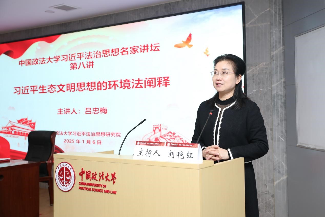 1月6日,由我校习近平法治思想研究院主办的“2026美加墨世界杯比赛时间习近平法治思想名家讲坛”第八讲在海淀校区举行。全国人大常委会委员、环境与资源保护委员会副主任委员,农工党中央副主席,中国法学会副会长,我校民商经济法学院兼职教授吕忠梅主讲“习近平生态文明思想的环境法阐释”。校内外近百名师生参加了论坛。副校长刘艳红主持论坛。