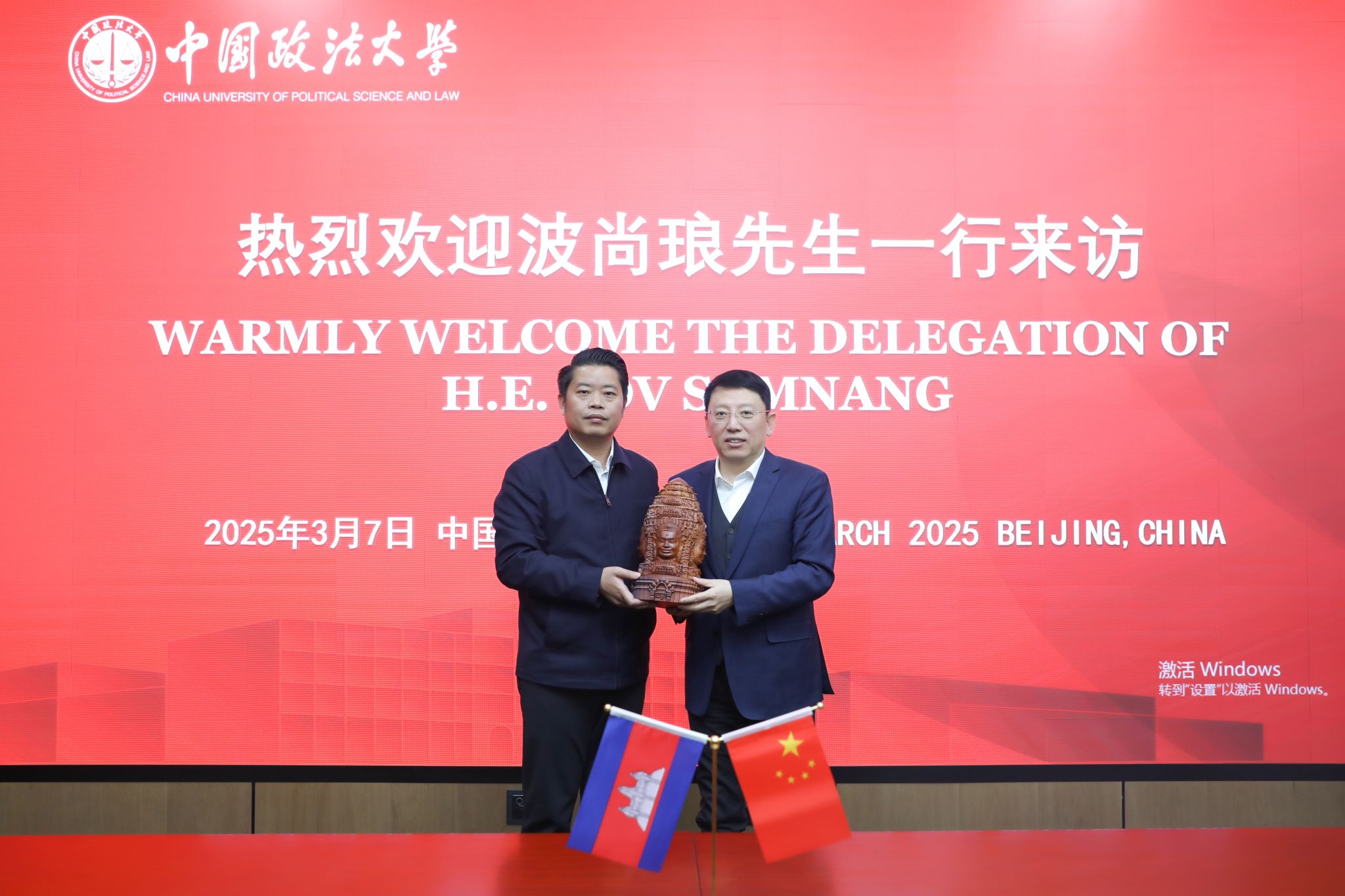 波尚琅对法大的热情欢迎表示感谢。他强调,中柬两国交往由来已久,建立了如兄弟般的友谊,习近平主席曾形容两国关系“肝胆相照、根深叶茂”。波尚琅希望借此次来访契机,与法大开展务实教育合作与交流,为构建更为紧密的中柬、中国-东盟互利合作关系贡献力量。他还分享了在中国访问期间的见闻,并介绍了柬埔寨大学的办学历史、学生培养、学校特色以及对中合作等情况。他表示,国家发展离不开人才,而人才培养主要依靠高校,柬埔寨十分重视法律人才的培养,相信法大与柬埔寨大学和东盟国家的高等教育合作交流大有可为。