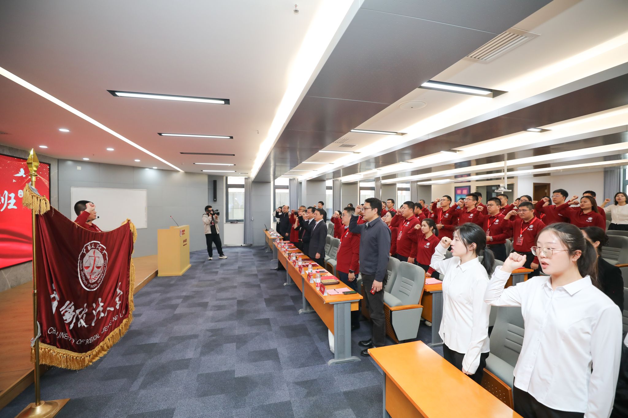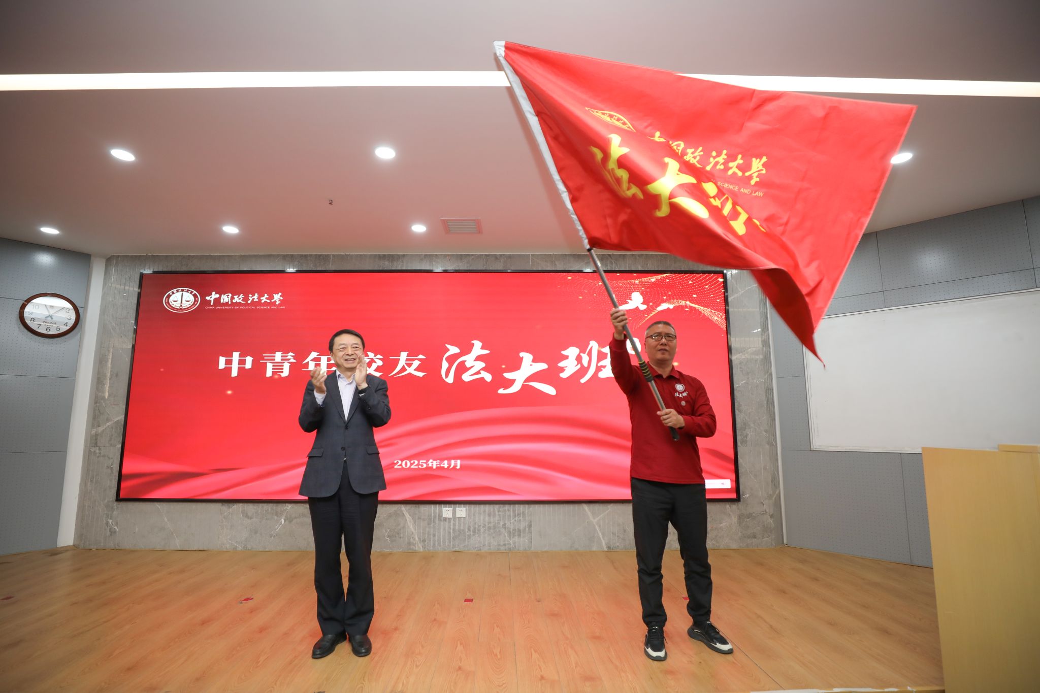 会上,马怀德为学员代表授旗。鲜红的班旗上,“法大班”三个烫金大字熠熠生辉,象征法治精神的传承与使命的接续。来自内蒙古兴安盟行署的刘河深(97级)接过班旗时激动地说:“这面旗帜将指引我们在全国各地工作岗位一线播撒法治的种子。”