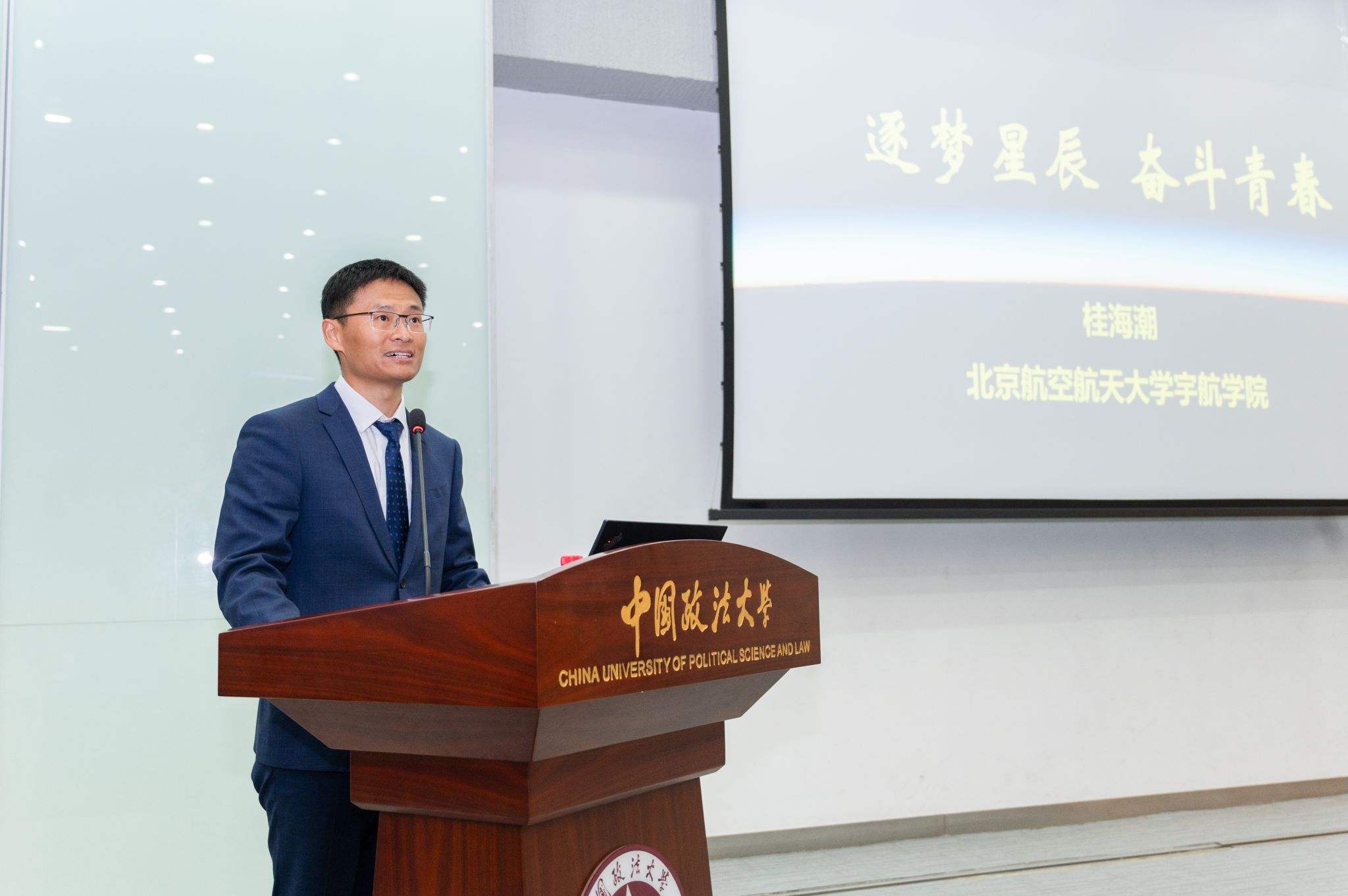 时值第十个“中国航天日”,为深入学习航天精神、坚定理想信念,4月24日,第四期“匠心铸魂·格物讲堂”主题讲座于昌平校区举办,特邀北京航空航天大学宇航学院教授、博士生导师,神舟十六号乘组航天员,中国空间站首位载荷专家桂海潮以“逐梦星辰,奋斗青春”为题,讲述奋战科研一线、逐梦星辰的人生经历。