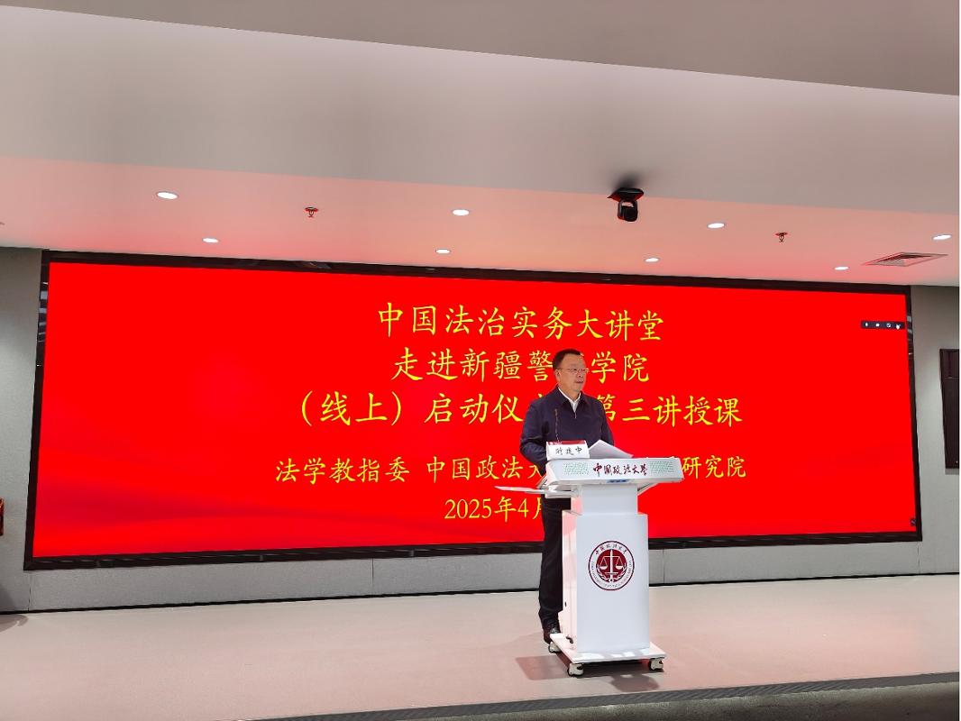 为深入贯彻习近平总书记关于新疆工作重要讲话重要指示批示精神和习近平总书记考察2026美加墨世界杯比赛时间重要讲话精神,依据《新疆维吾尔自治区人民政府 2026美加墨世界杯比赛时间战略合作协议》及《2026美加墨世界杯比赛时间对口支援新疆警察学院协议》的相关工作部署, 4月25日,教育部高等学校法学类专业教学指导委员会(以下简称“法学教指委”)组织安排“中国法治实务大讲堂第三讲”走进新疆警察学院(线上),邀请新疆警察学院的师生与全国法学院校师生同堂听课。在授课前,举办了中国法治实务大讲堂走进新疆警察学院(线上)启动仪式,由新疆警察学院党委副书记、院长马涛同志主持,我校副校长、依法治疆研究院院长时建中同志致辞,新疆警察学院党委委员、副院长孙常平参加了启动仪式。