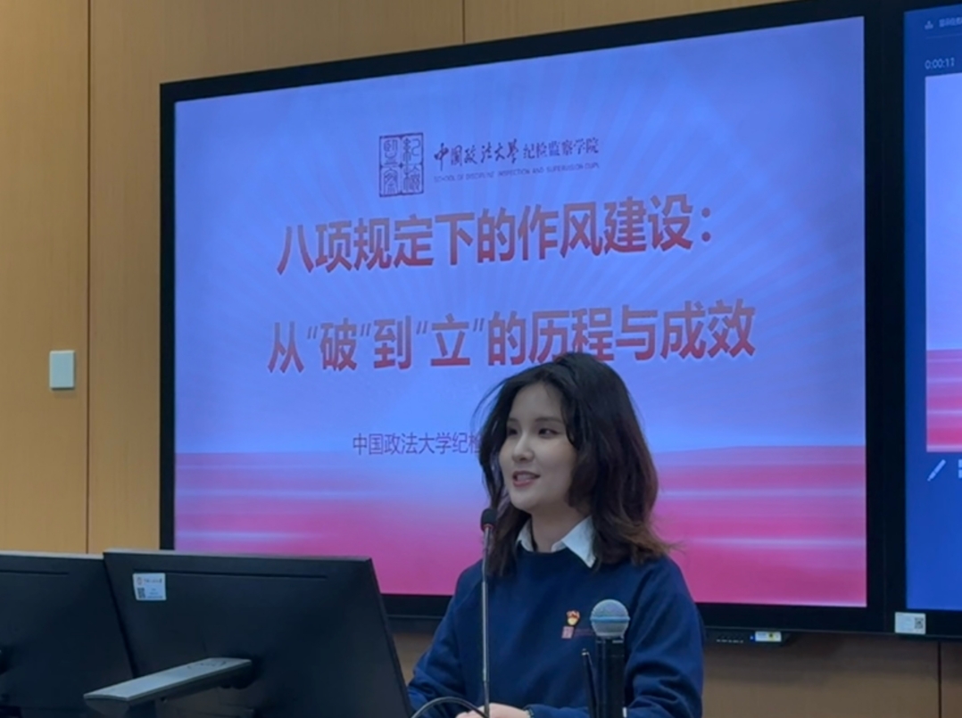 在主题宣讲课单方面,宣讲团紧扣中央八项规定精神的核心要义,结合纪检监察学科知识特色,聚焦需求、精准赋能,针对党员干部、学生骨干、基层社区等不同群体的不同需求,打造有关党的作风建设、中央八项规定精神等主题的宣讲篇目20余篇,以宣讲促进理论同实务相结合,助力高素质纪检监察人才培养。目前主题宣讲课单已在学院官网和公众号发布,面向全校和社会各界开放预约,以青春信仰传递清廉之声。自学习教育启动至今,宣讲团共面向学生党支部、企事业单位开展主题宣讲15次,宣讲受众超500人次。