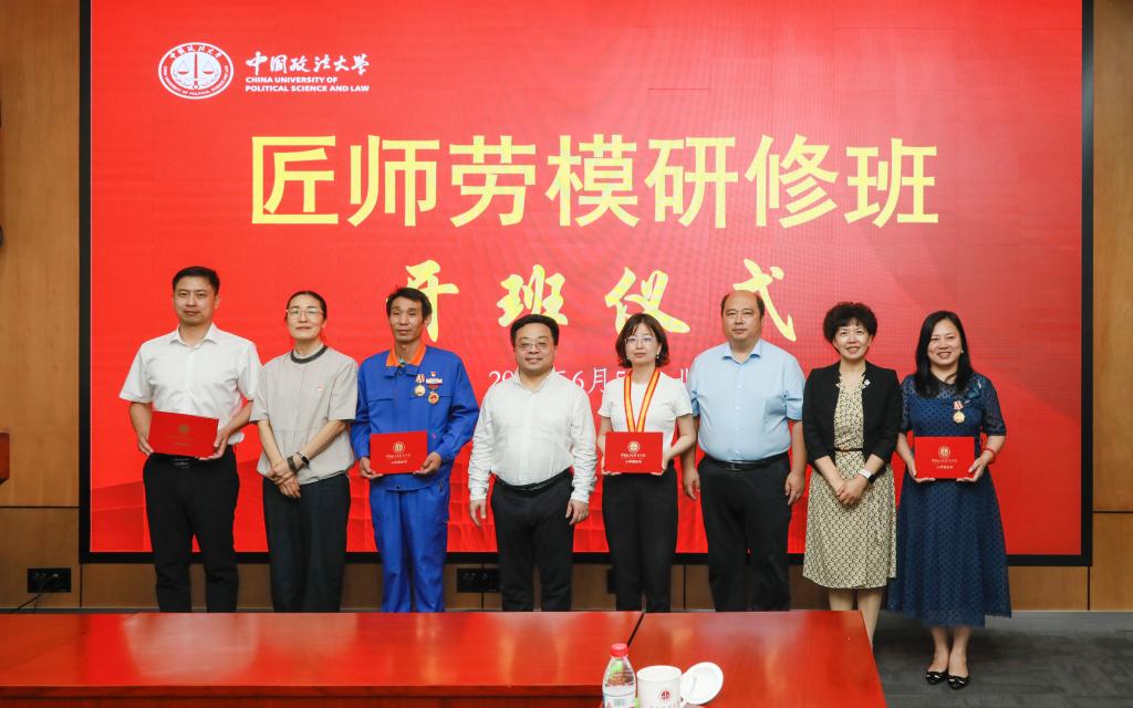 6月5日,北京市总工会匠师劳模同等学力研修班开班式在我校海淀校区举行。北京市总工会职工大学党委书记刘蓉、副校长朱京萍,我校副校长于飞出席开班式。仪式由中央政法培训学院执行院长、继续教育学院院长宋乃龙主持。全国人大代表、全国劳模吴华侠,全国劳模常洪霞、谷民,全国五一劳动奖章获得者晏武,北京市劳模刘红等优秀学员共同参加开班式。