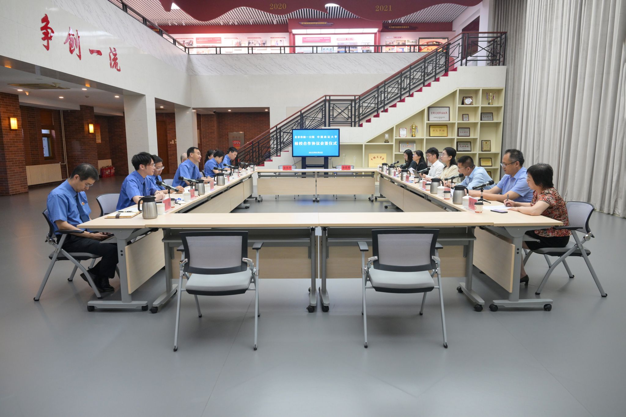 6月6日,证据科学研究院赴北京市人民检察院第一分院举行校检合作协议会签仪式。党委常委、副校长刘艳红,证据科学研究院党委书记尚武、院长彭文华,北京市检一分院党组书记、检察长余飞,党组成员、副检察长张际枫,党组成员、政治部主任袁煜驰及各部门负责人等出席会议。