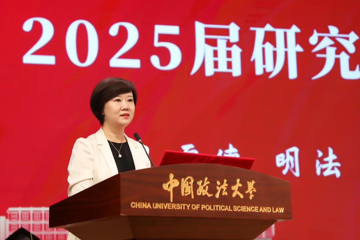 校友代表、2006届民商法学硕士、抖音集团法务副总裁邰江丽结合互联网发展历程,剖析了科技对法律秩序的重构,点明法律实践面临的新挑战,表示法律智慧在于规则内创新。她建议毕业生保持对多元领域的好奇心,并在所选赛道持续深耕,培养跨界对话能力,以全球视野提升职业高度,带着对公平正义的信仰走向未来。