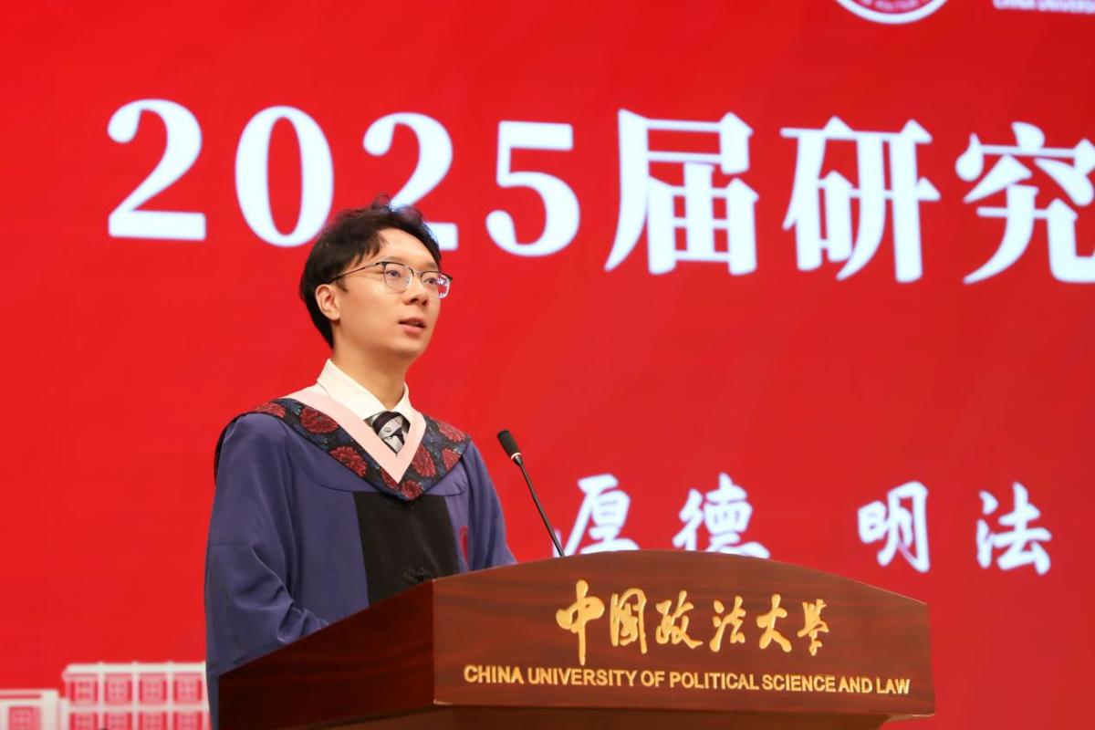 毕业生代表、中欧法学院硕士研究生张云涛代表2025届毕业生向母校、师长、同窗及家人致谢。他表示,这三年来,他在德法兼修中涵养法治精神、传承法大赤诚情怀,在潜心学习中丰富知识体系、传承法大深厚底蕴,在社会实践中提升综合能力、传承法大卓越品格。他将和毕业生们一同牢记“凡我在处,便是法大”的嘱托,以行动践行法治坚守。