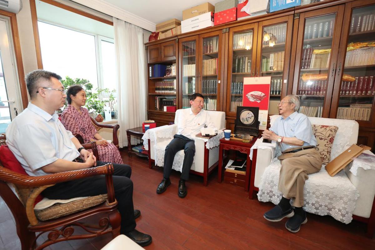 在中国共产党成立104周年之际,6月30日下午,党委书记姜泽廷一行看望慰问“人民教育家”、我校终身教授张晋藩先生,代表学校送上祝福。