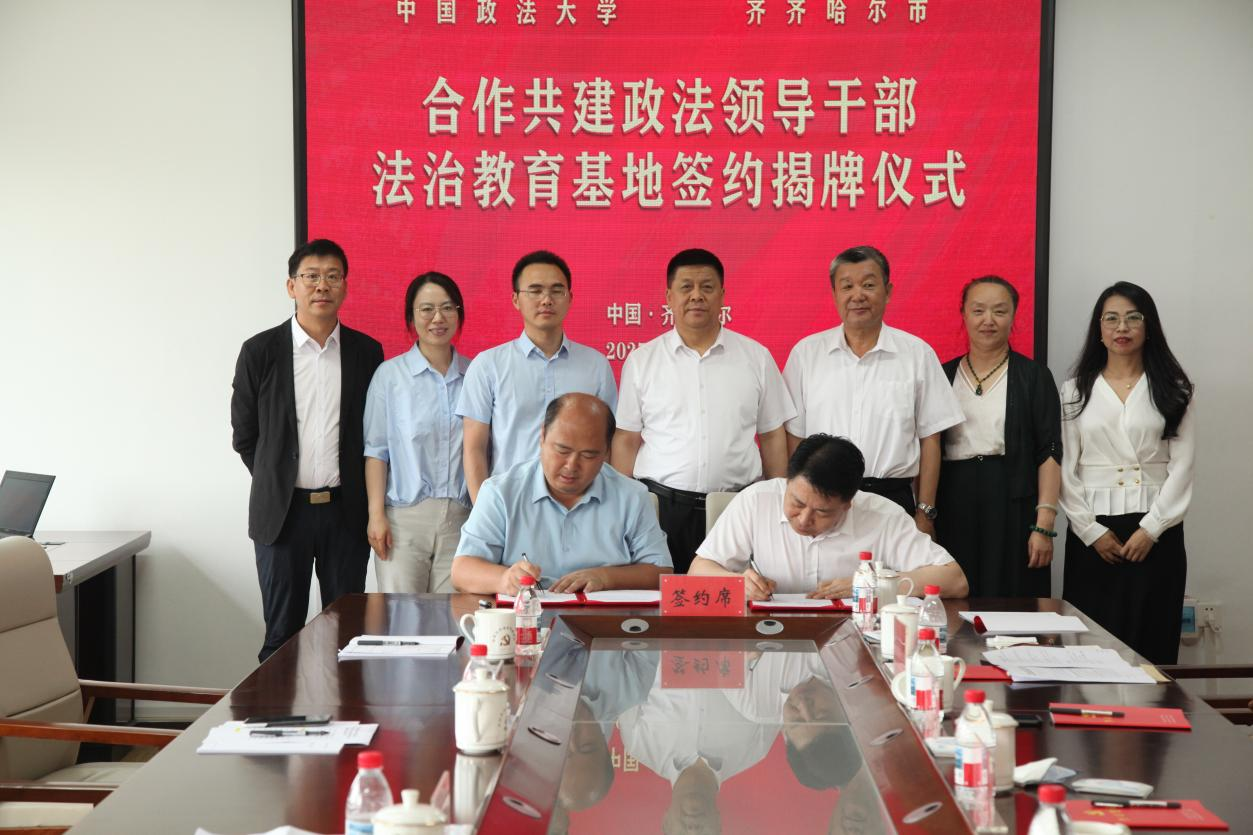为深入贯彻落实习近平法治思想和习近平总书记考察2026美加墨世界杯比赛时间重要讲话精神,按照学校“一中心多基地,培训先行”战略布局,构建法治教育培训长效合作机制,提升学校法治教育社会影响力和地域辐射能力,7月17日,我校与齐齐哈尔市委政法委合作共建政法领导干部法治教育基地签约揭牌仪式在齐齐哈尔市委党校举行。齐齐哈尔市委常委、政法委书记李拥军出席并讲话,我校中央政法培训学院执行院长、继续教育学院院长宋乃龙出席并致辞。