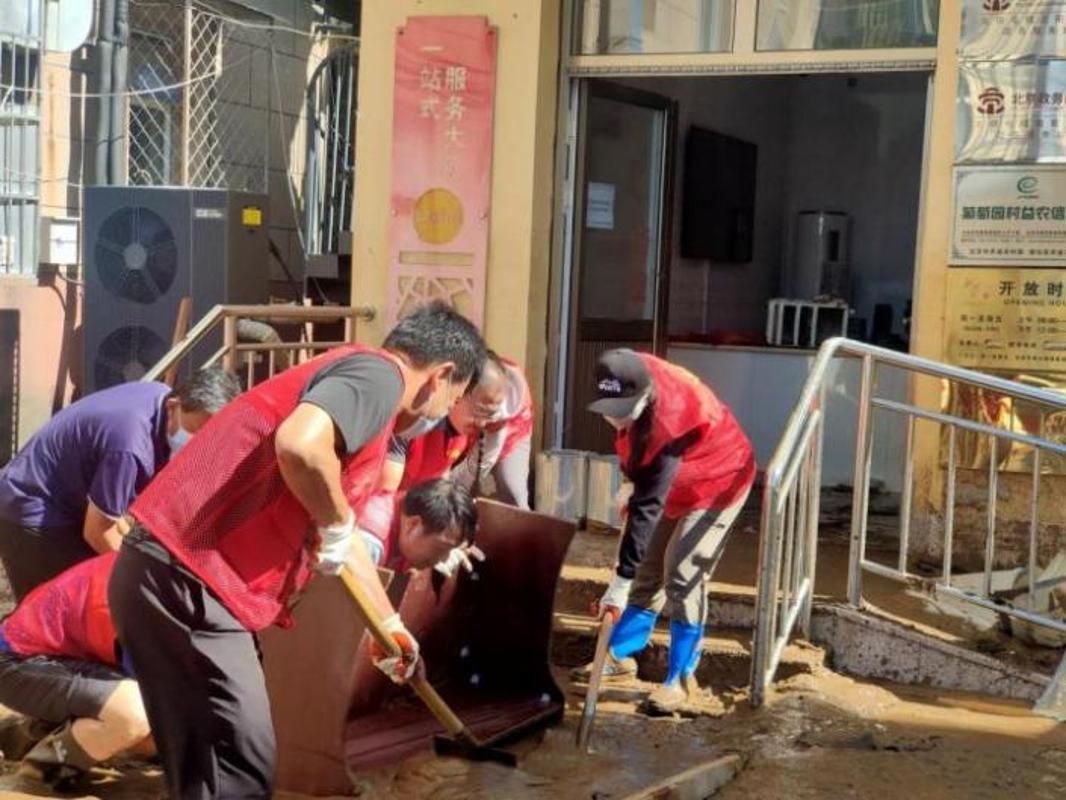 灾情就是命令。7月30日,当得知邻近的葡萄园村受灾严重,村委会被淤泥淹没时,我立即联络太师屯镇第一书记联盟的其他成员一同前往支援。在葡萄园村村委会院内,近20厘米厚的淤泥让救援工作举步维艰。我们将村委会一站式办公大厅作为责任区域,开始了清理工作,大家拿起铁锹跳进泥浆中,一锹一锹地铲起淤泥。办公区域的桌椅被淤泥黏连在一起,于是我们采用绳索固定、杠杆分离等方法,将部分办公家具移出。遇到墙角、柜底等容易积存淤泥的区域,大家便使用小型工具进行彻底清理。等清理完成时,身上的衣服已经被汗水混合着泥水浸透了。