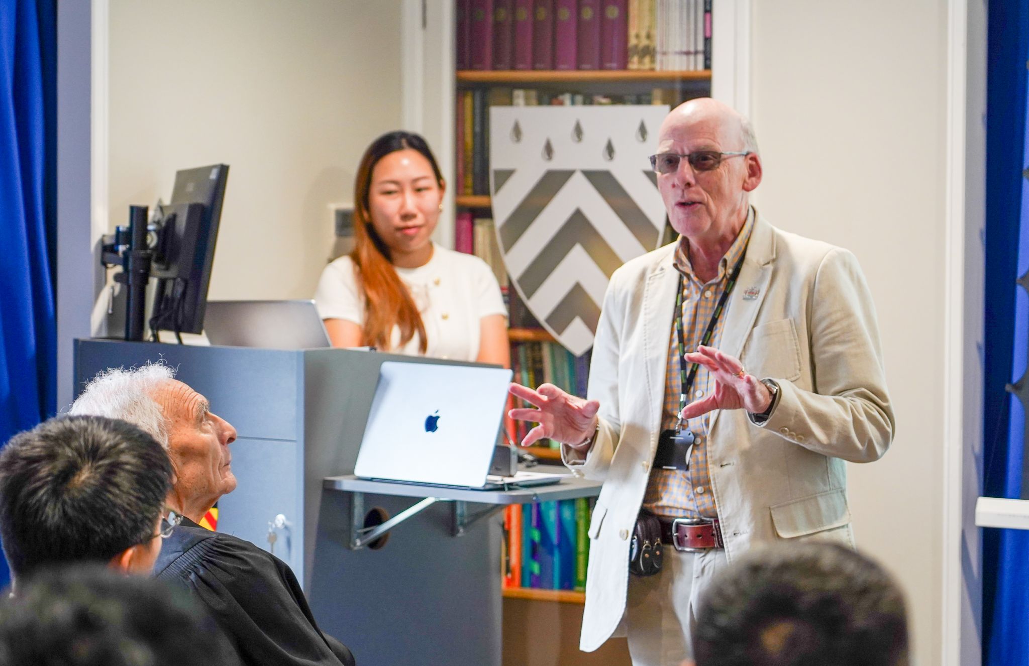 在国家推进涉外法治建设的战略背景下,我校承办的中国海洋石油集团有限公司涉外法治专项培训班世界名校阶段于8月11日至26日在英国剑桥大学开班,这标志着我校大型央国企涉外法治人才世界名校培训项目正式开始。剑桥市前任市长Russ McPherson先生、剑桥大学克莱尔学院院长Alan Short 教授、我校承办该项目的继续教育学院相关负责人等出席培训班开班仪式。