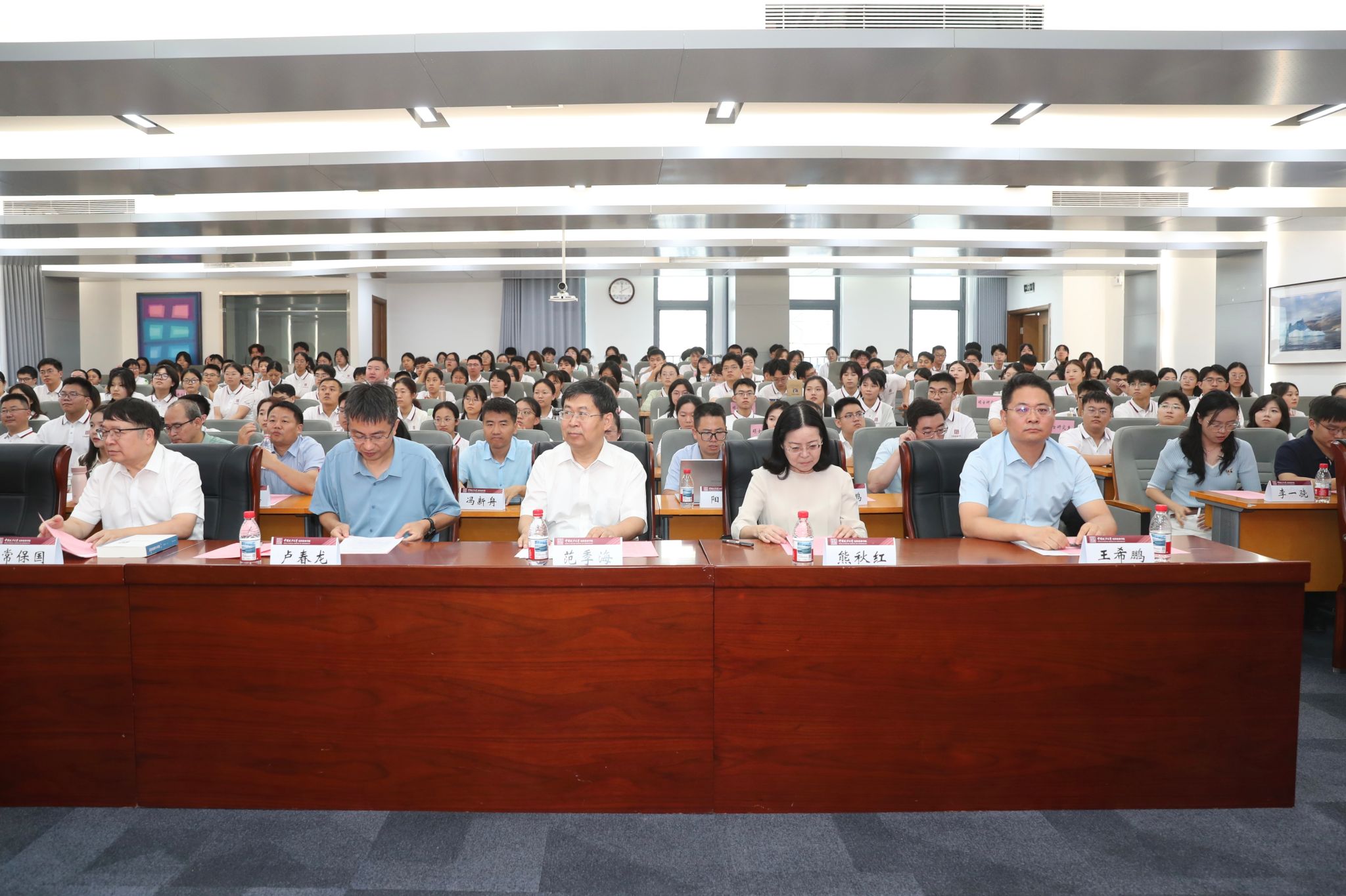 李莉介绍了学院2025年招生情况:2025 级本硕博新生招生呈现规模稳步扩大、质量持续提升、研究生生源学科背景丰富三大特点。副院长施鹏鹏介绍了晋江民营企业家支持学院建设情况后,与会人员共同观看了捐助我院的福建盼盼食品集团副总裁蔡镕骏的新生寄语视频。