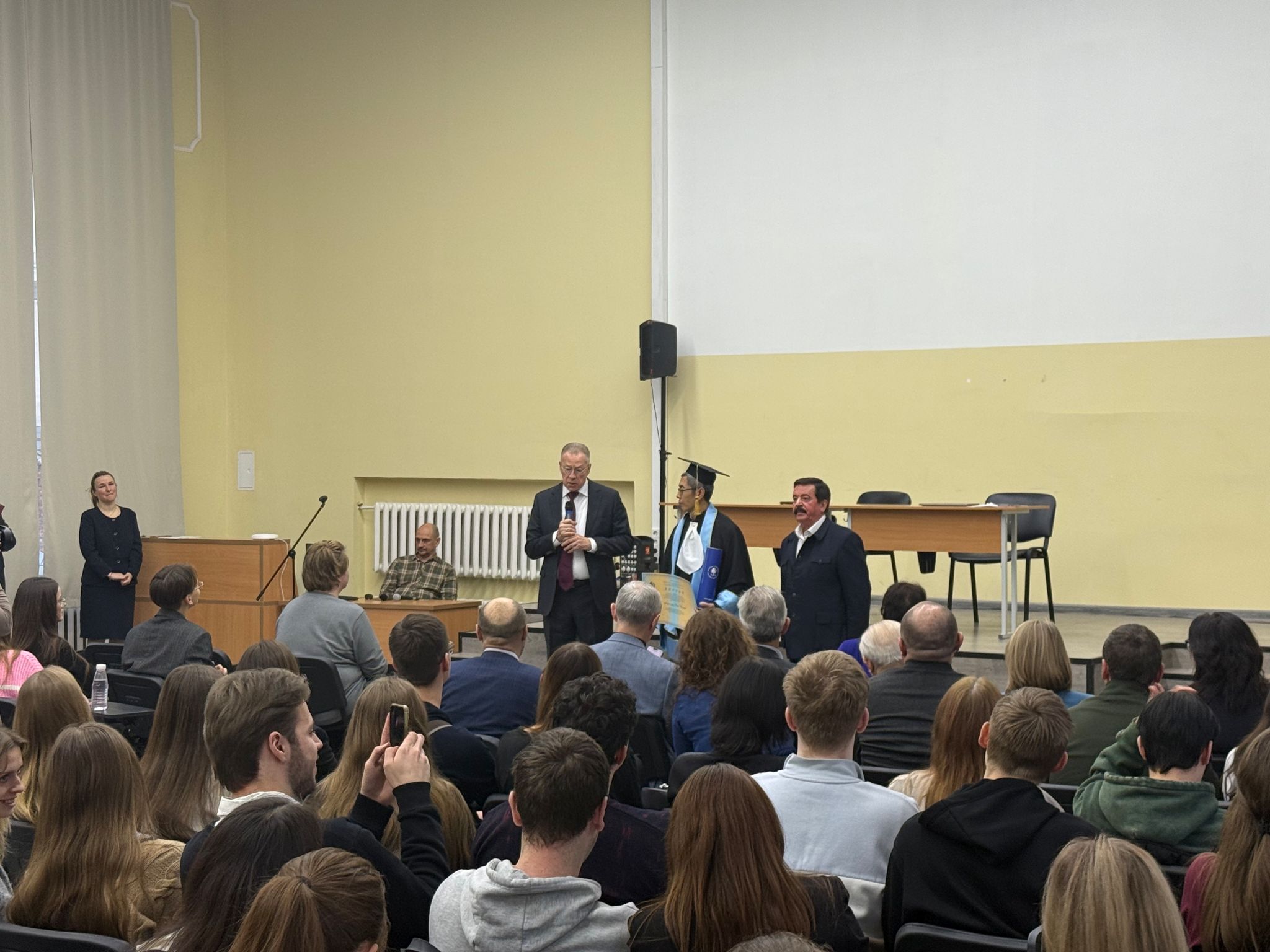 讲座结束之后举行了隆重仪式,俄罗斯国立人文大学校长安德烈·洛吉诺夫授予王志华 “荣誉博士”(Почётный доктор, HONORIS CAUSA, Российского государственного гуманитарного университета»)学位。俄罗斯国立人文大学法学院院长、俄罗斯原副总理谢尔盖·沙赫赖出席本次授予仪式。