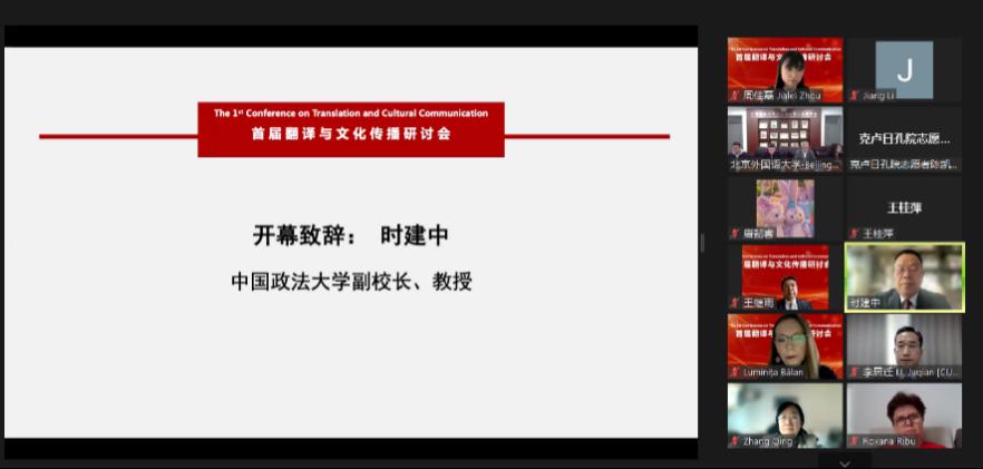 (特约通讯员 张雅明 贾尚栩)2022年11月5日,首届“翻译与文化传播研讨会”在线上举办。此次研讨会由我校共建罗马尼亚布加勒斯特大学孔子学院、布加勒斯特大学中文系、中国外文局翻译院、北京外国语大学欧洲语言文化学院、我校外国语学院共同主办,主题为“多学科交叉视角下的翻译与文化传播”。我校副校长时建中、北京外国语大学副校长赵刚、代理中国外文局翻译院院长王继雨出席会议并致辞,中国翻译协会常务副会长、中国翻译研究院副院长、中国外文局原副局长兼总编辑黄友义,我校外国语学院副院长张法连,布加勒斯特大学孔子学院罗方院长、外国语学院教授白罗米(Luminița Bălan)作主旨发言。北京外国语大学欧洲语言文化学院副院长、罗马尼亚研究中心主任董希骁,我校外国语学院院长张清,布加勒斯特大学中文专业讲师包心如(Paula Teodorescu)分别主持三场分论坛。共60余名中罗师生线上参会。会议由布加勒斯特大学孔子学院中方院长、我校副教授周佳磊主持。