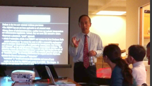 10月26日,正在哈佛法学院访学的我校副校长张保生教授应邀在东亚法律研究项目圆桌论坛做了《中国刑事证据制度改革》英文讲座。讲座分三个部分:(1)中国司法改革的两个不同路径;(2)两个新刑事证据规定的意义;(3)中国刑事证据制度的重建。在一个小时的演讲中,张保生教授回顾了中国司法改革的进程,针对司法不公、不廉的问题,通过案例分析,提出了重建中国证据制度以实现公正高效权威的社会主义司法制度建设目标的思路,并回答了学者和学生提出的提问。