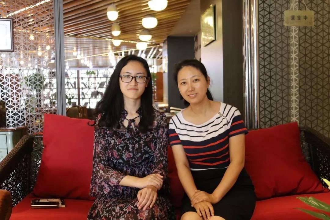 (寻访团学生记者与孟丽娜校友。上图右为孟丽娜校友,左为学生记者杨及雨。)