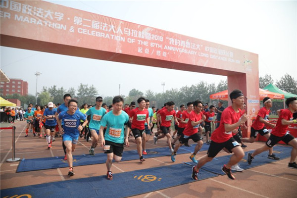 据悉,“法大人马拉松”比赛以四分马拉松形式呈现,总赛程约为10公里,运动员由在校大学生、教职工和校友共同组成;“我的青春法大”67周年校庆长跑,则依照指定路线绕校园长跑4圈,全程约6.5公里,只有在校大学生参与。我校今年首次将“法大人马拉松”和“我的青春法大”校庆长跑两个赛事合并举办,活动融合了校庆元素和运动健康元素,共吸引了近1200名师生、校友参赛,其中320余名师生、校友报名参加“法大人马拉松”,800余名学生报名参加校庆长跑。