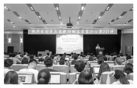 吴志成教授在本次讲座中围绕“新时代的全球变革大势”、“中国发展面临的外部新挑战”和“中国特色外交”三个方面进行深入解读。吴志成教授认为当前世界处于大发展、大变革、大调整时代,人类生活的世界充满希望,但也充满挑战。第一部分中,吴志成教授用四个“越来越”生动地总结了新时代的全球变革大势,既“世界越来越地球村化——全球化、命运与共”;“美国越来也不美国——国家化、退群单边”;“中国越来越像中国——多变化,和合担义”;“中美越来越不和美——竞争化、争利角力”。在第二部分中,吴志成教授详细列举和介绍了当前中国发展面临的外部新挑战。第三部分中吴志成教授主要阐述在新的全球发展大势和挑战下,中国应坚定“行大道、利天下的中国特色大国外交”。面对中美大国关系,吴志成教授提出“中美应良性竞合”,达到一个既合作又竞争的状态。