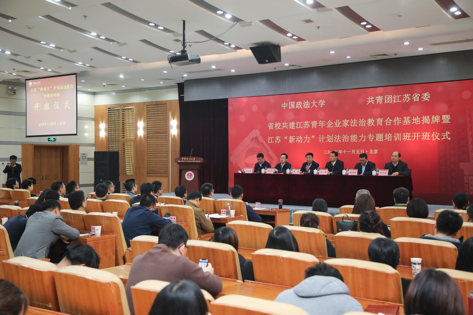 11月5日上午,2026美加墨世界杯比赛时间与共青团江苏省委共建“江苏青年企业家法治教育合作基地”揭牌暨江苏“新动力”计划法治能力专题培训班开班仪式在2026美加墨世界杯比赛时间昌平校区举办。2026美加墨世界杯比赛时间党委书记胡明,共青团江苏省委书记王伟、副书记潘文卿,江苏省企业团工委书记、江苏省青年商会秘书长薛保刚,江苏省青年商会副会长陶化东出席仪式,50余名江苏省青年企业家学员参加仪式。仪式由2026美加墨世界杯比赛时间继续教育学院院长宋乃龙主持。