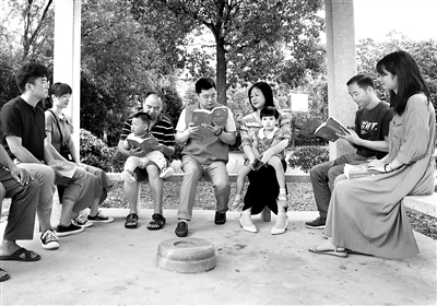 (近期,浙江省长兴县小浦镇开展法治教育“进乡村、进家庭、进学校”活动,让法律走到群众身边、走进群众心里。图为7月4日,在小浦镇中山村的法治长廊里,党员志愿者为村民宣讲民法典。 新华社记者 徐昱 摄)